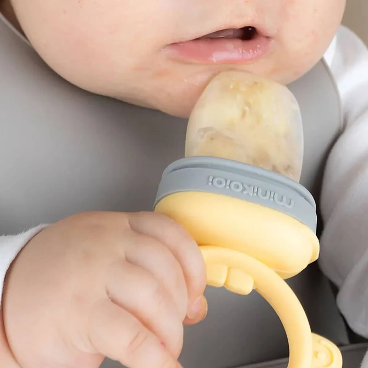 The size of the holes is safe to introduce fruit and vegetables for first-time feeders. Calms the gums of babies during teething when used with chilled/frozen foods.