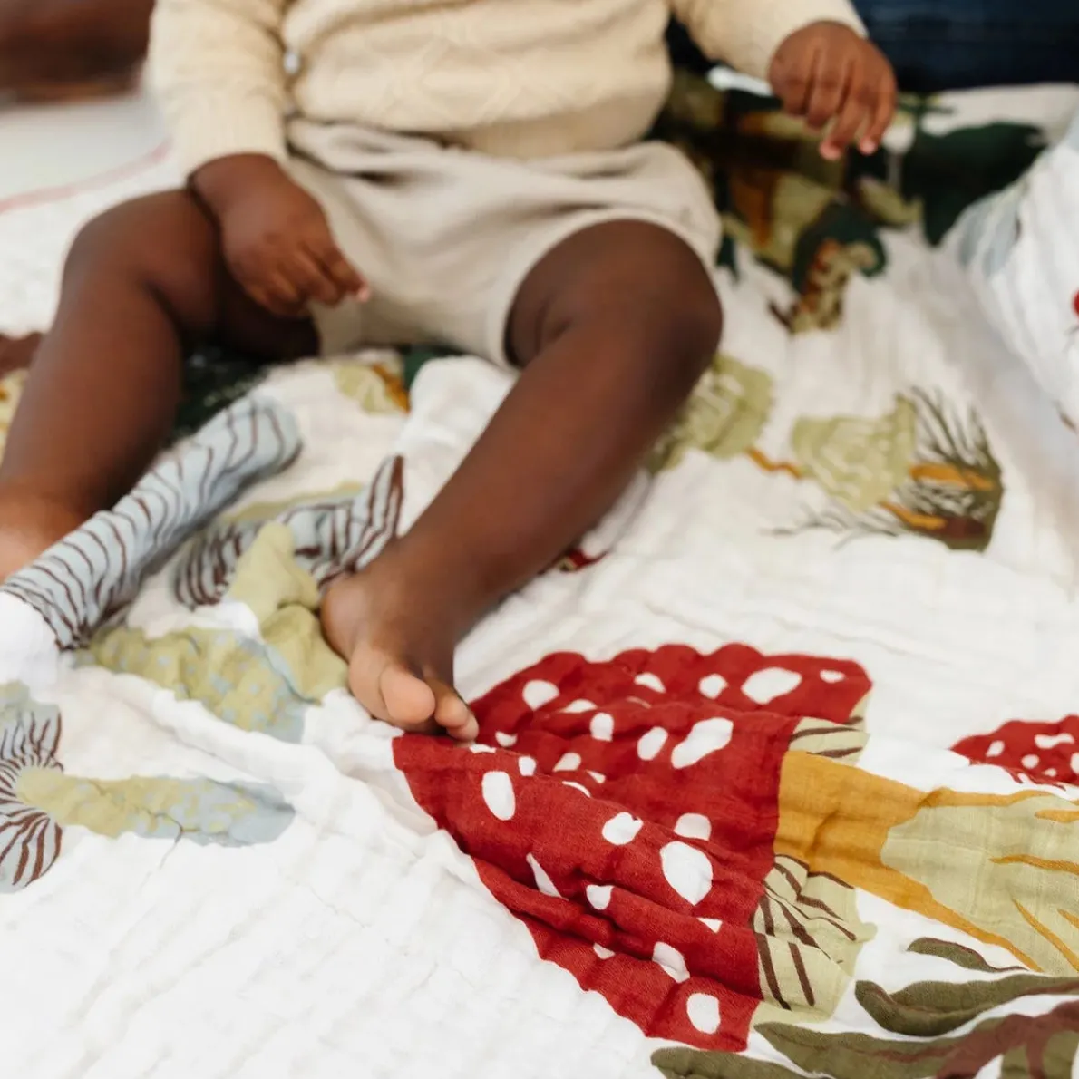 Clementine Kids Quilts are four layers of muslin layered in a warm but breathable quilt that is perfect for nap time, play time, picnics, and pictures.