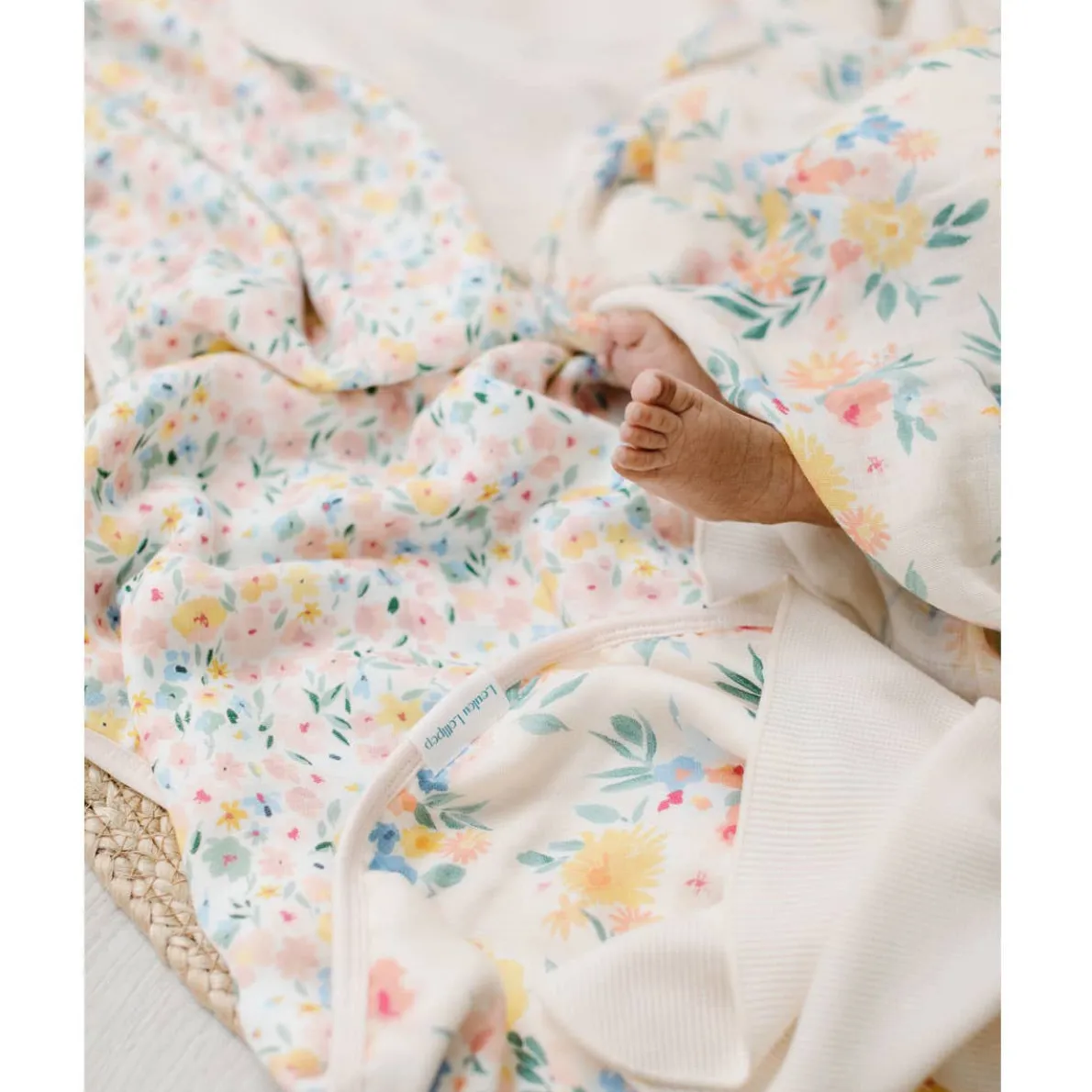 Loulou Lollipop muslin quilts made from four layers of bamboo and cotton muslin fabric offer the perfect amount of breathable warmth and coziness to keep the baby comfortable and relaxed. This large reversible blanket is lightly quilted and features hand-drawn watercolor prints. This multi-purpose muslin quilt blankets are generously sized, measuring 47″ x 47″ to grow with baby through the toddler years, and are great for tummy time, playtime, and as a stroller blanket. Manufactured at an OEKO-TEX Standard 100 certified factory, you can feel confident that blankets are free of toxic chemicals and always safe for your baby.