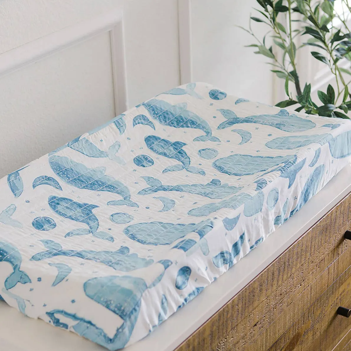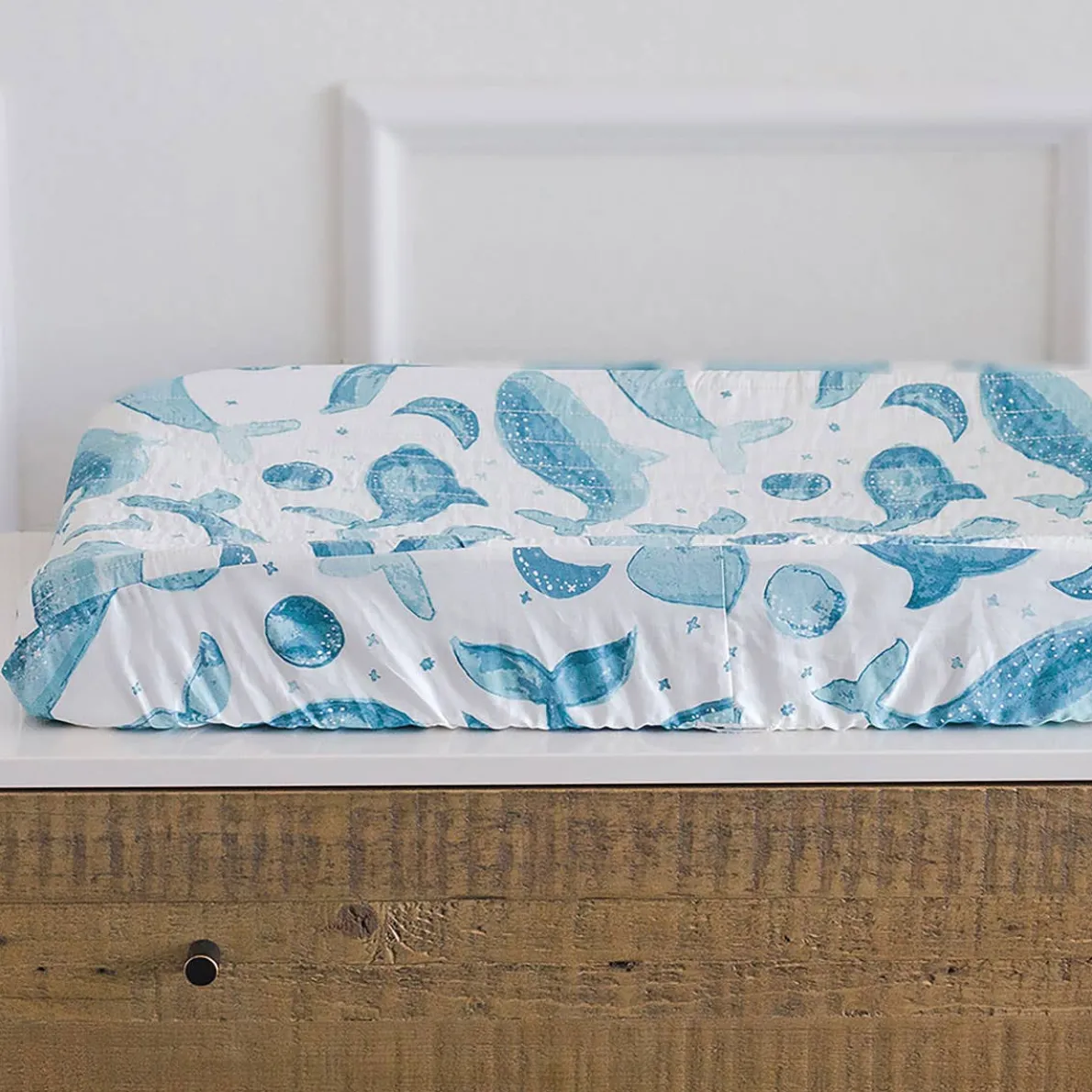Complete your nursery with our 100% cotton sateen change pad cover available in a variety of designs printed to portray the essence of a watercolor we painted in house. Change pad covers are the perfect way to add whimsical accents of color and pattern to your nursery. Cotton sateen is breathable and softens with every wash.