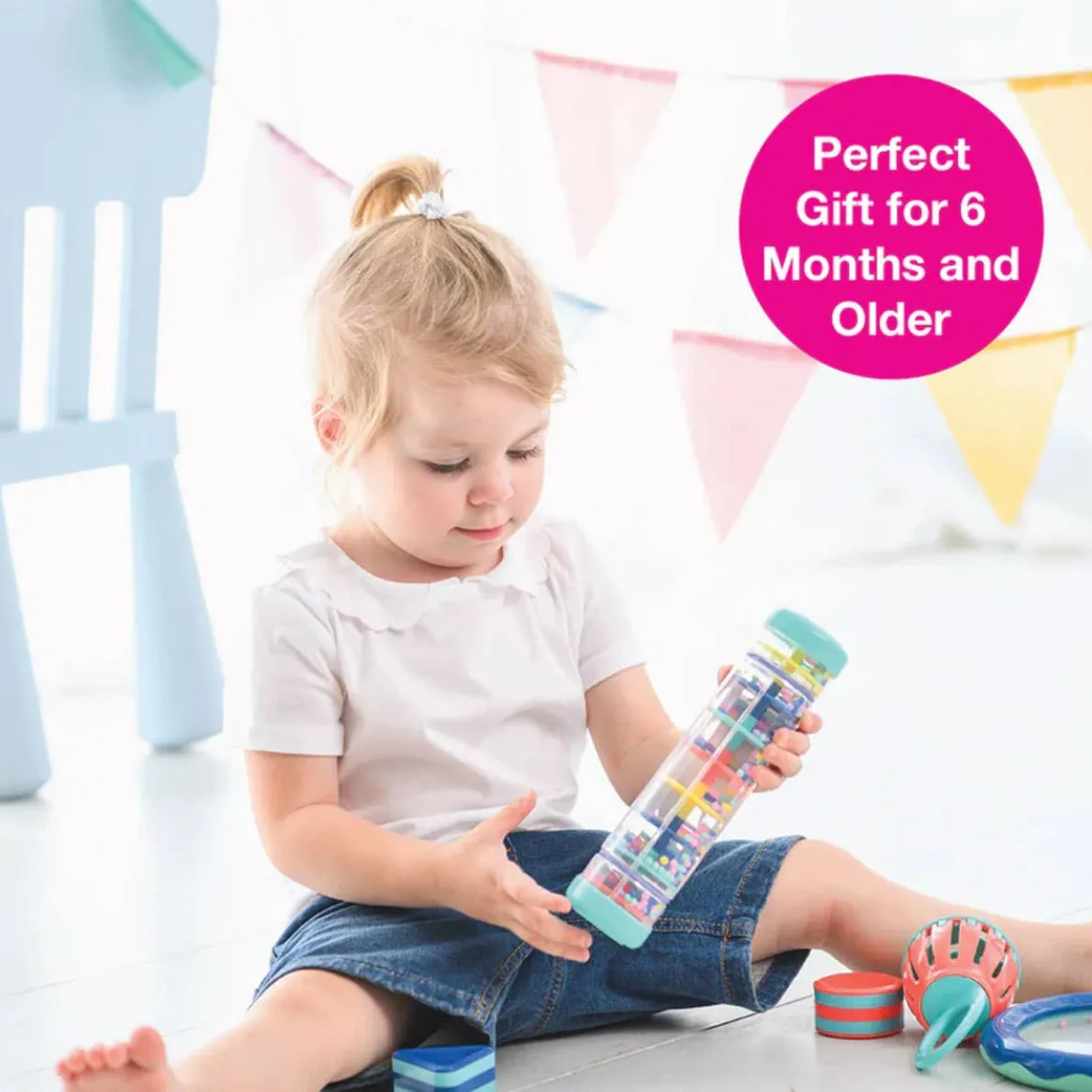 Help your child experience this traditional musical instrument as a safe and colorful toy. Rainstick’s sound is soothing and will help develop senses while calming your little one.