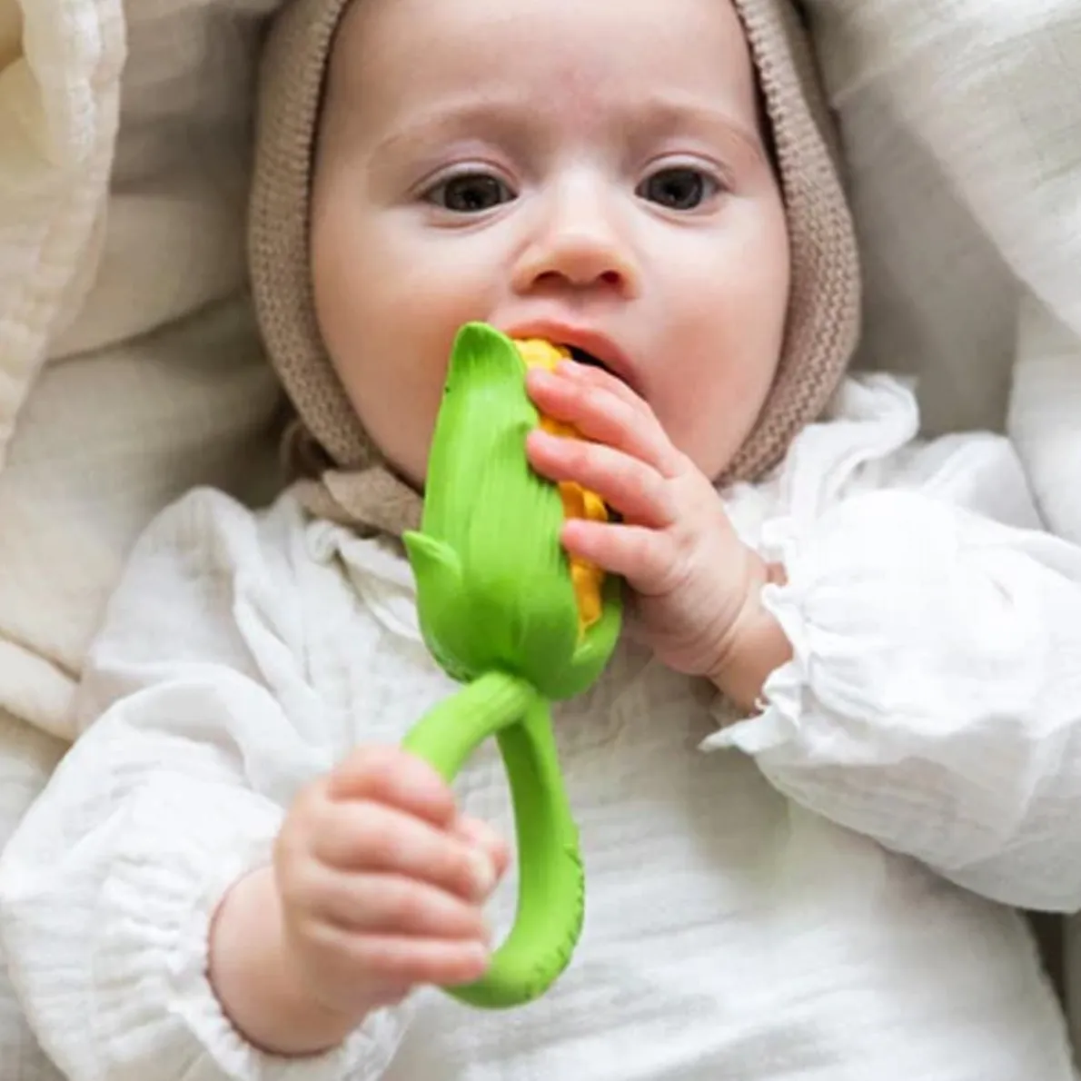 New revolutionary concept! Oli & Carol’s Rattle Toy is the GREENEST RATTLE IN THE MARKET! Its exterior is made of 100% natural rubber, and inside are upcycled cherry seeds that turn this teether into a rattle. 2 in 1!