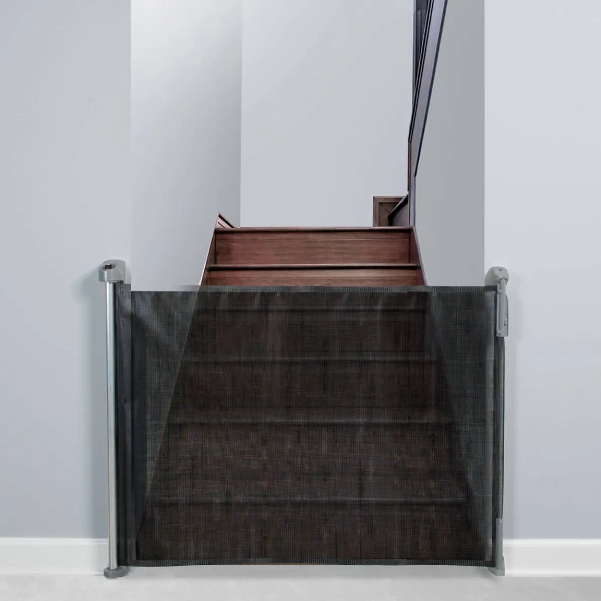 The KidCo Retractable Safeway is a flexible, yet safe mesh barrier with patented one-touch memory button to pre-set the gate width for easy and safe walk through. The super quiet recoil won’t wake your baby and the INCLUDED spacers make baseboard installation a breeze. Extends for all openings up to 55″ and features quick release hardware to stow away when not in use. Height: 33.5″.