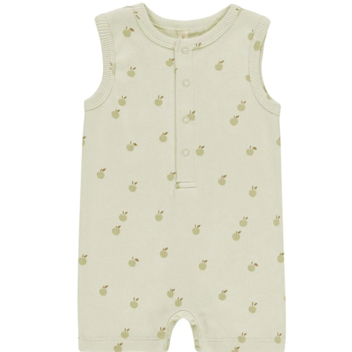 This ribbed romper is an easy lightweight look for summer. Designed with buttons down the chest and inseam for easy changes.