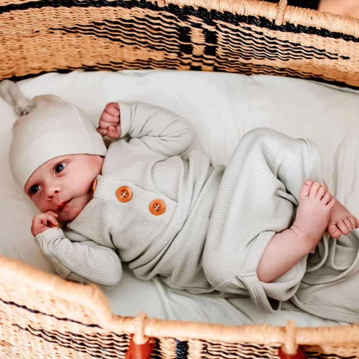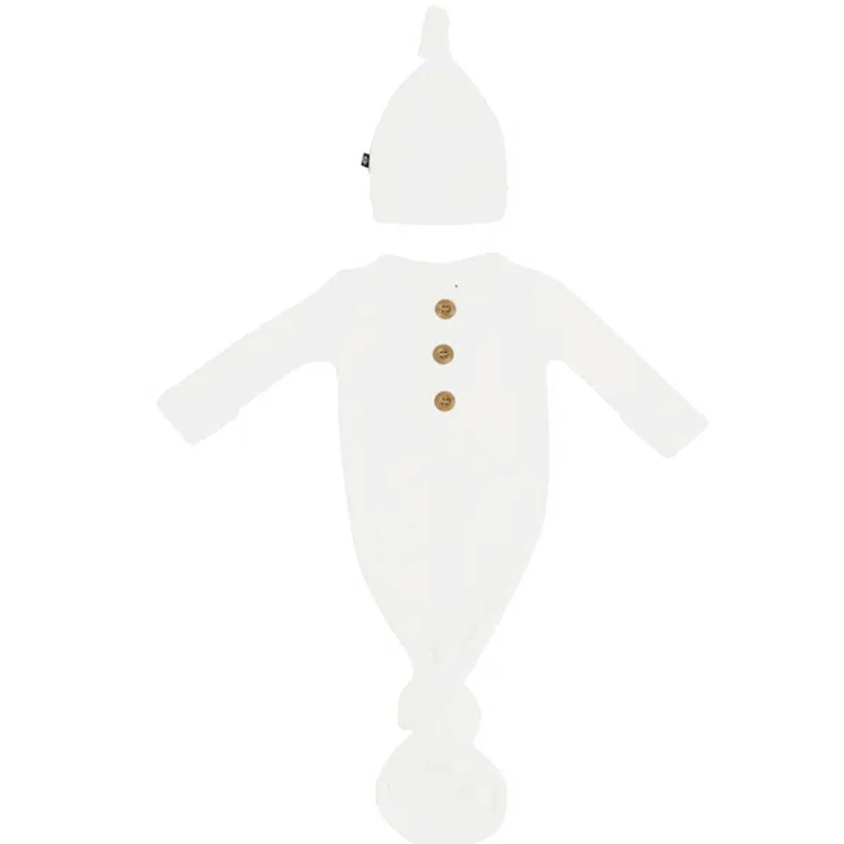 This all-in-one outfit is the softest newborn essential designed with both you and your baby in mind. Crafted from soft, stretchy ribbed bamboo, this gown features a tie bottom for easy diaper changes and comes with a knotted turban for the finishing touch to a classic look.