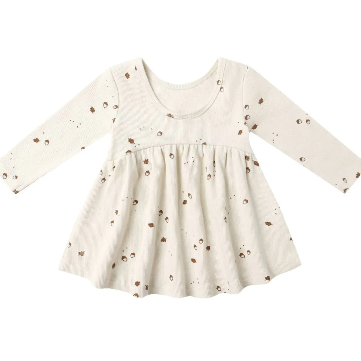 Ribbed long sleeve swing dress with a full skirt and scoop neckline. Coordinating bloomers included with all sizes.
