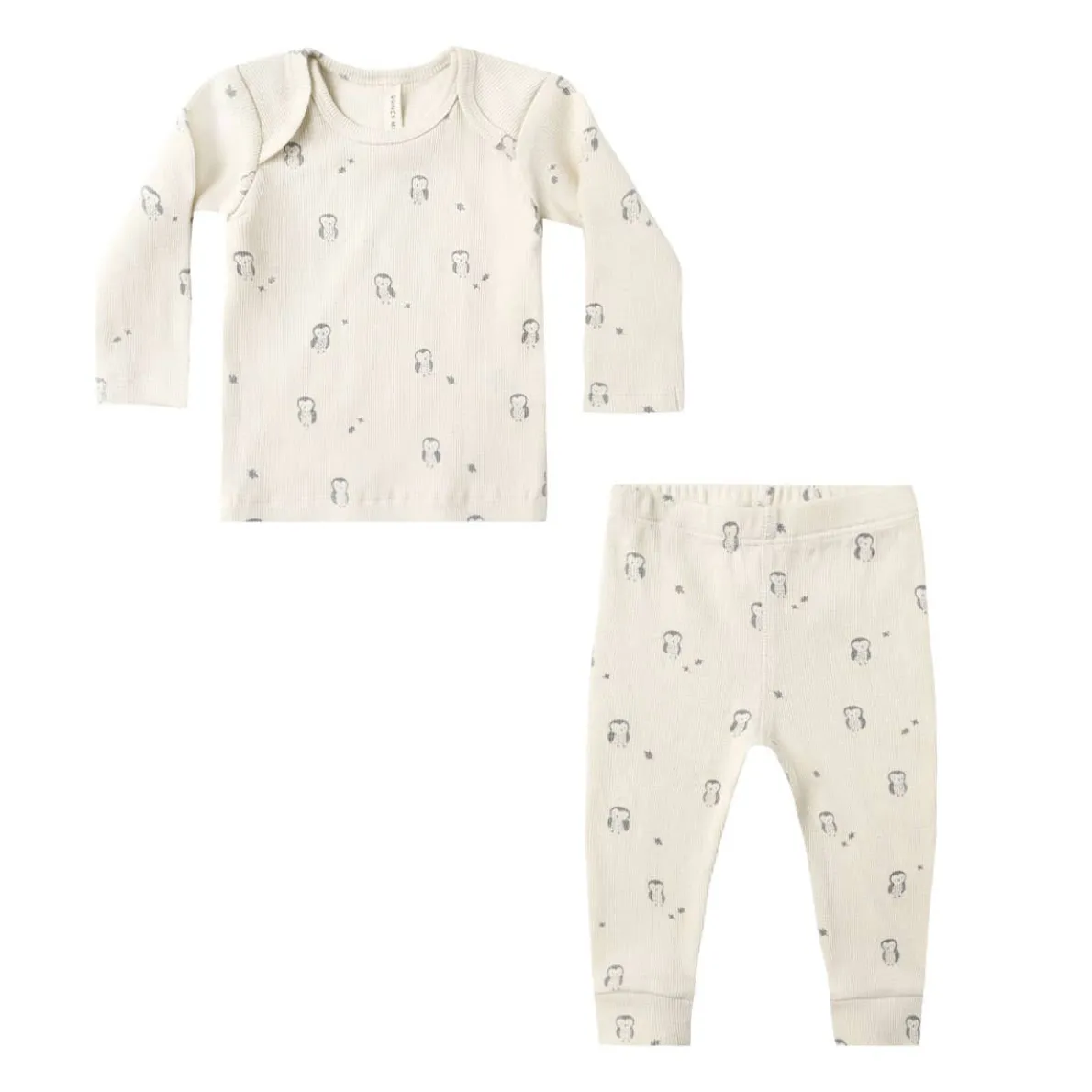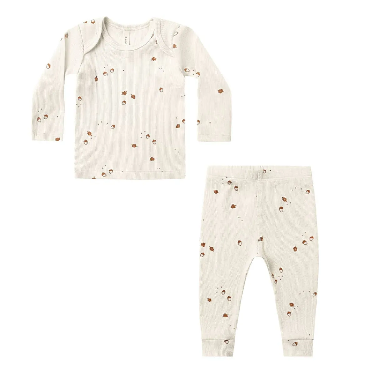 Slim-fit long sleeve tee and leggings set crafted from soft, stretchy rib knit.