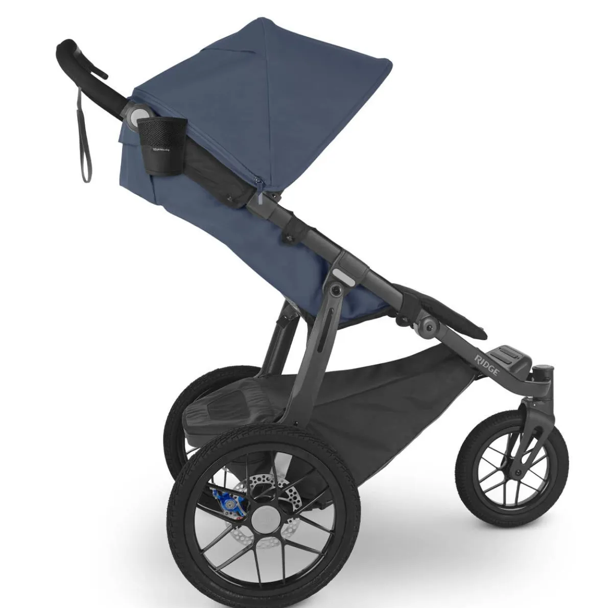 The Cup Holder easily attaches to your RIDGE stroller and holds a variety of beverage shapes and sizes. Remains attached when folding stroller.