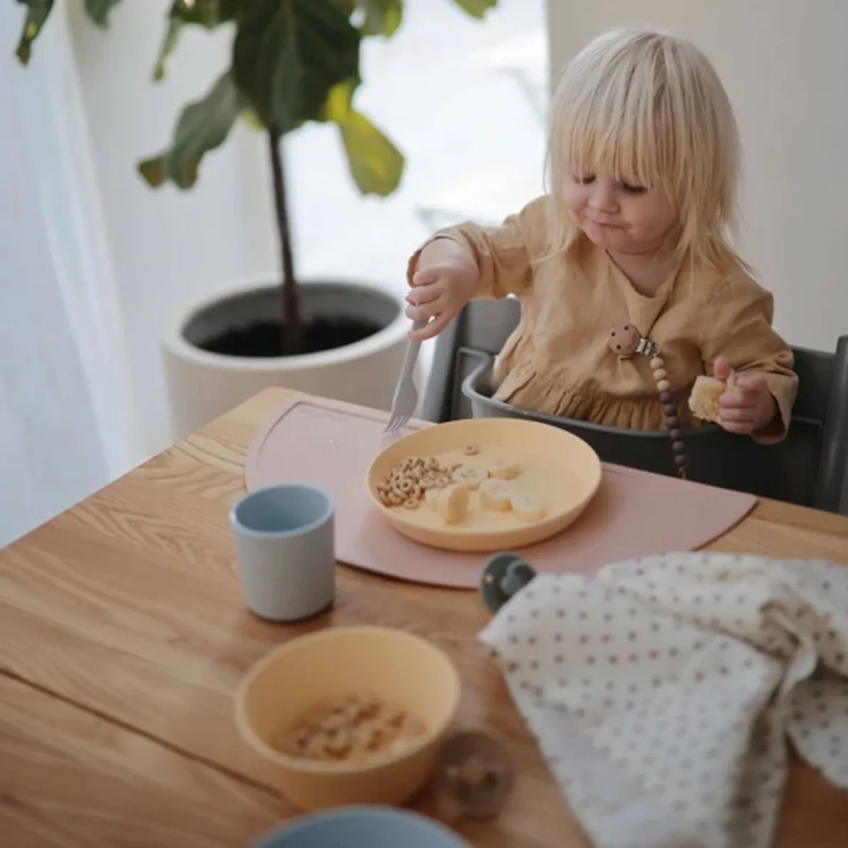With soft colors and clean design, this plastic dinnerware set is simple, elegant, and easy for your baby to hold. Made in Denmark from BPA-free polypropylene plastic, these plates are dishwasher- and microwave-safe to simplify mealtime and make cleanup easy.