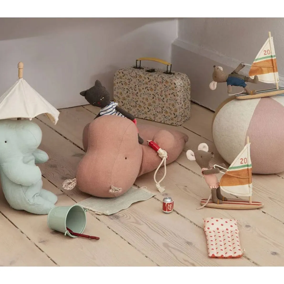 Safari friends are made of the softest linen and come in many different colours. They can sit by themselves and give the best hug you can imagine. Just look at how cute this hippo is!