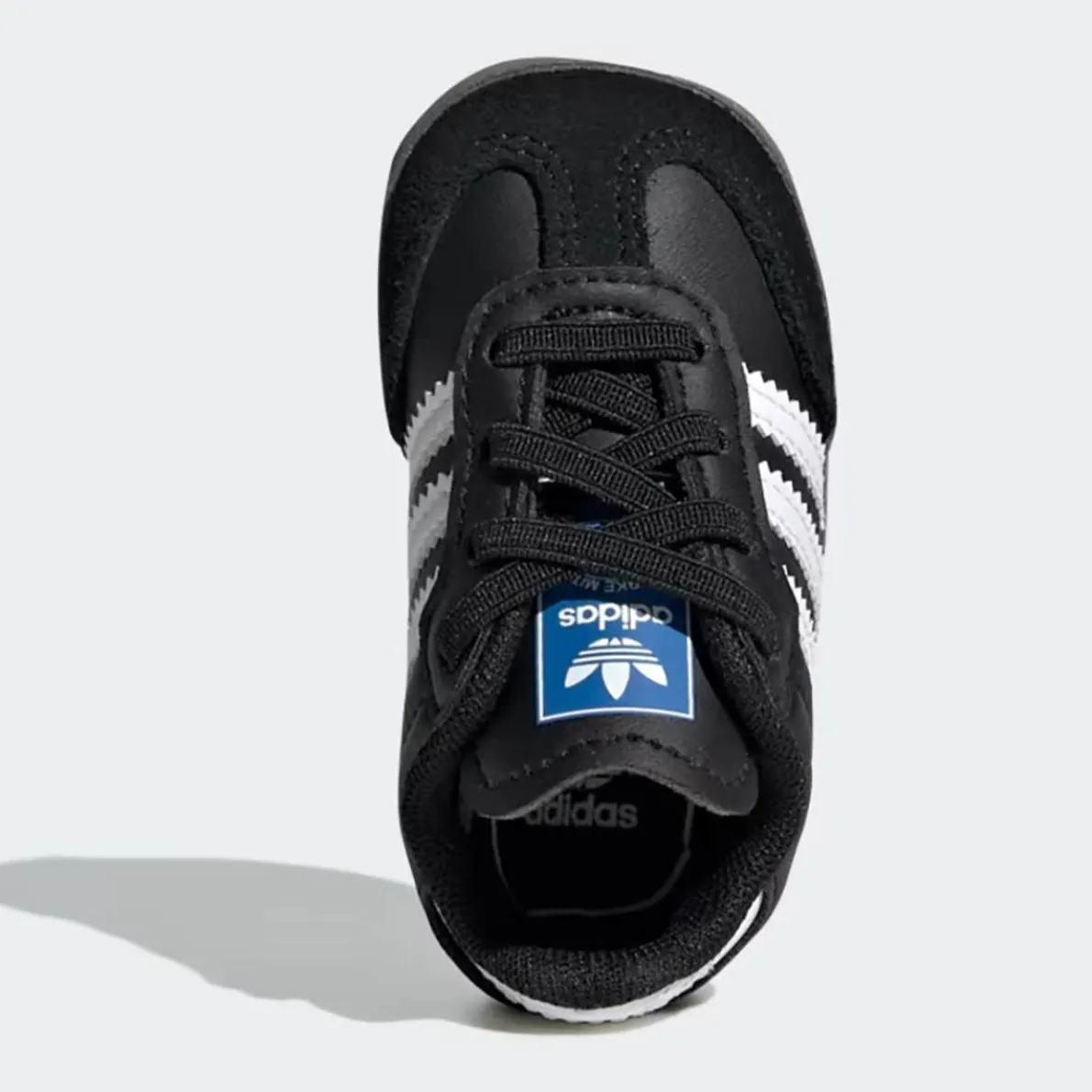These toddlers’ adidas Samba shoes bring an iconic style to tiny feet with the same smooth leather upper, suede T-toe and grippy rubber outsole as the 1950s soccer classic. Now the treasured design that’s spanned generations helps the littlest ones find their footing. As your little kicker pushes up to stand, squats to sit and takes those first few wobbly steps, these sneakers provide support and help them get a grip on the world around them.