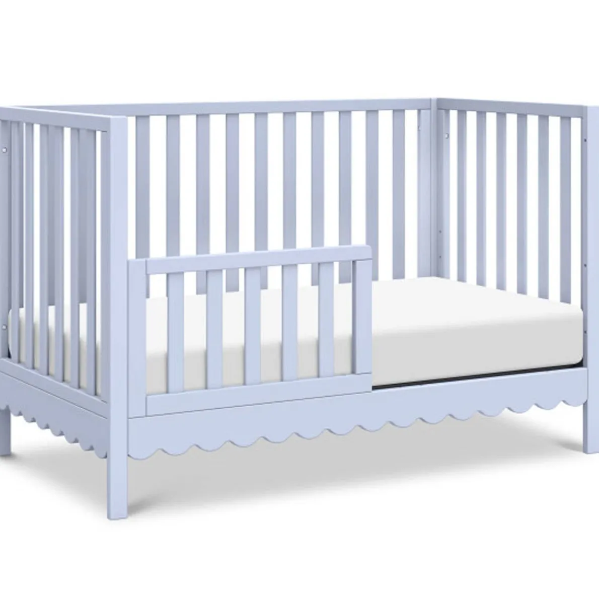 From its charming scallop detailing to its playful colors, the Sammy Scallop 4-in-1 Convertible Crib easily transitions with your little one from baby to teen. Paired with its matching 6-drawer dresser and bookcase, the Sammy Scallop Collection ensures that every moment with your little one is filled with style and joy.