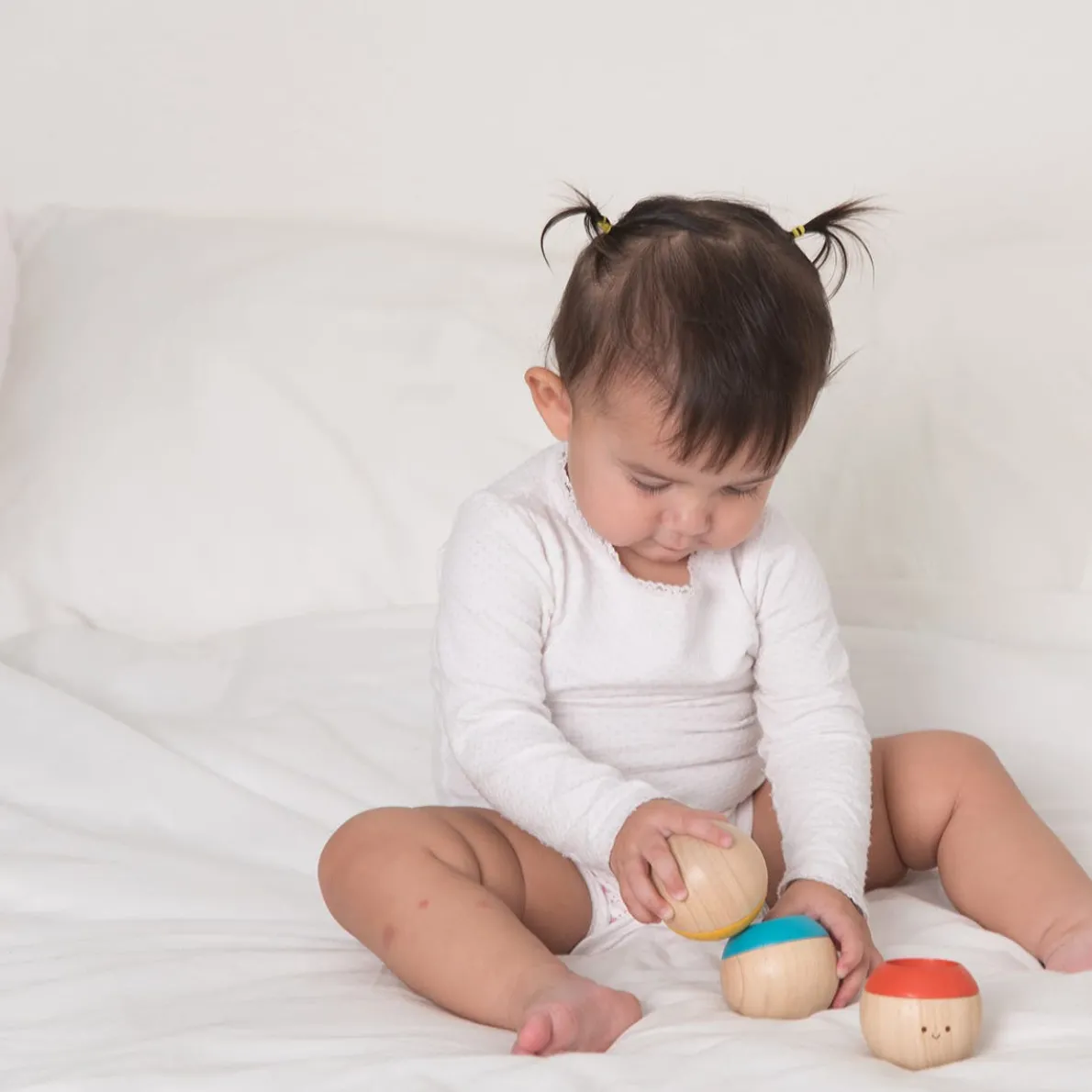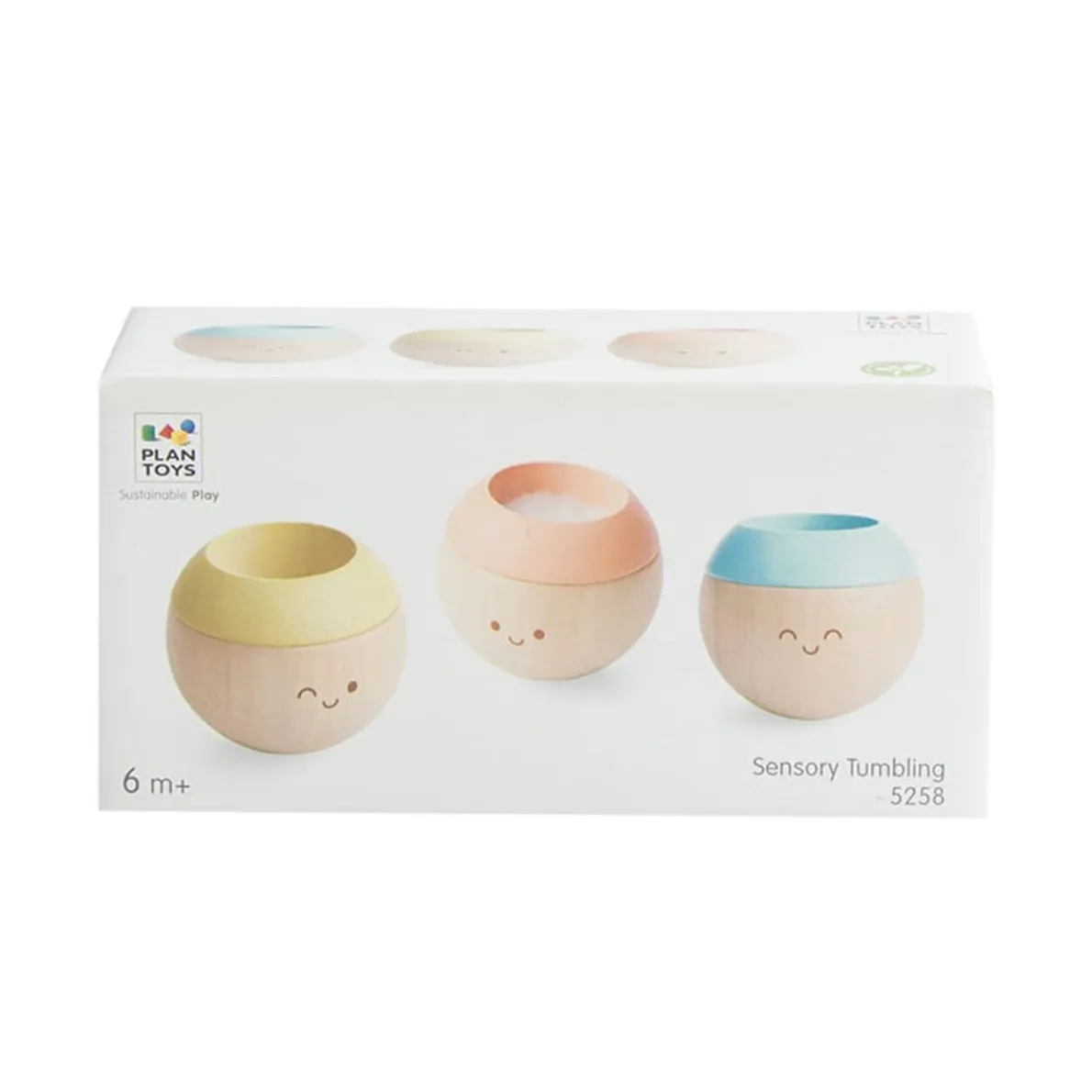 This is a simple and fun sensory toy for the kiddos. This set features 3 different sensory of the tumbler toys; auditory, visual, and texture.
