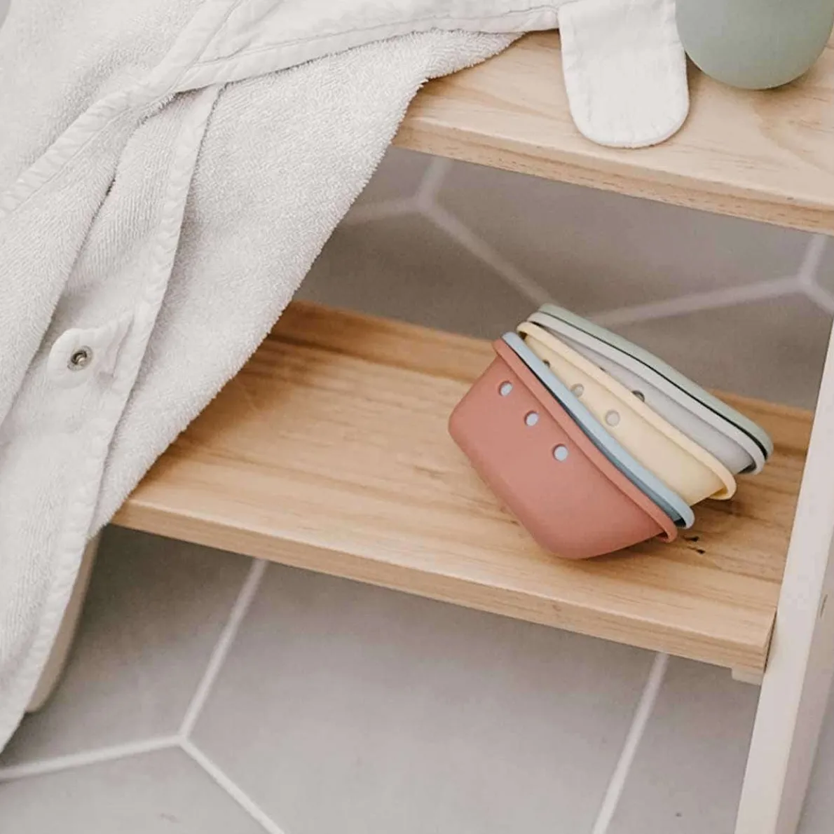 Float, scoop, and sift with the noüka Silicone Stacking Boats during bath time and water play. Five floating boats feature holes at the top for scooping and sifting water or sand. Easily stackable for storage and encourages fine motor skill development. Made from soft and flexible food grade silicone, the floating boats are easy to clean, durable, and long-lasting. These Silicone Stacking Boats are available in an array of calming, modern colors for your little one.