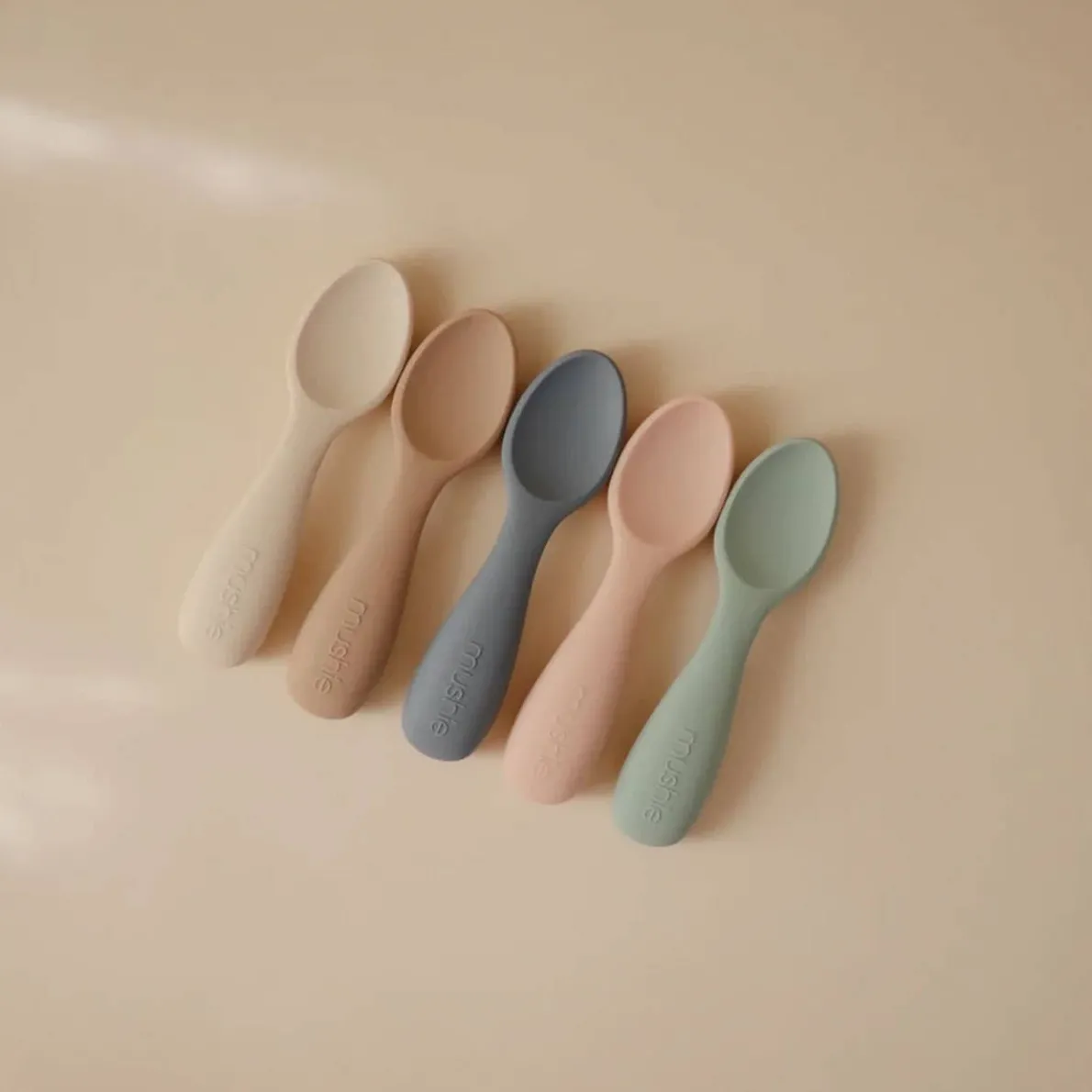 Mushie toddler starter spoons are the perfect companion for your little one’s journey into independent feeding. Made from non-toxic, food-grade silicone, these spoons are gentle on sensitive gums and emerging teeth. The easy-to-grip handle designed for little hands promotes coordination and confidence as children learn to feed themselves.