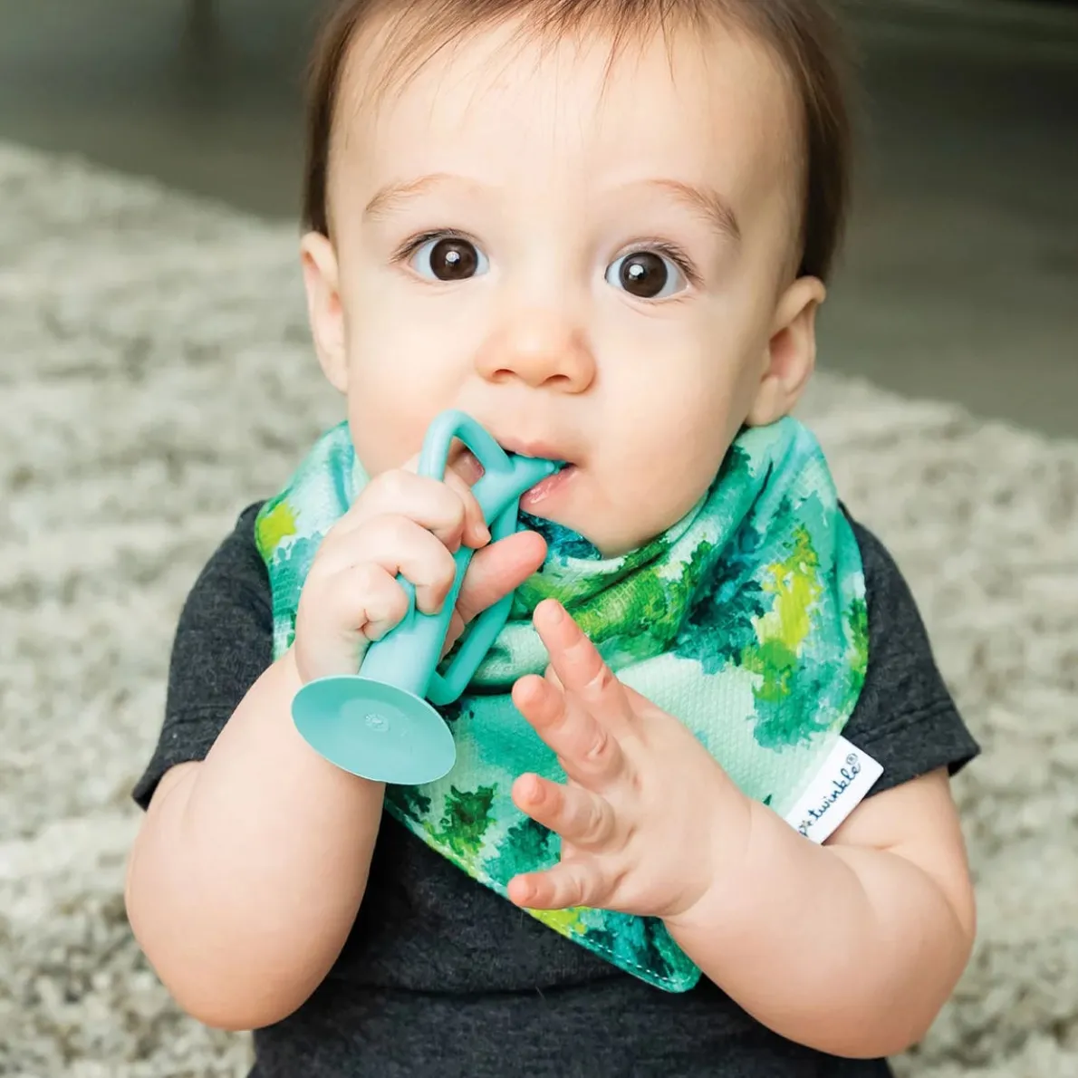 Tiny Twinkle’s Silicone Training Toothbrush 2-Pack is the perfect way to encourage early dental hygiene! Made from 100% food grade silicone, the Training Toothbrush is both durable and soft on baby’s gums. Featuring multiple textures to massage and stimulate baby’s gums, the toothbrush also has soft and gentle bristles to help clean new baby teeth. Easy to grip handles make using the toothbrushes simple for little ones. Suction base keeps the toothbrush upright and away from germs. Dishwasher and freezer safe. For ages 6 months and up.