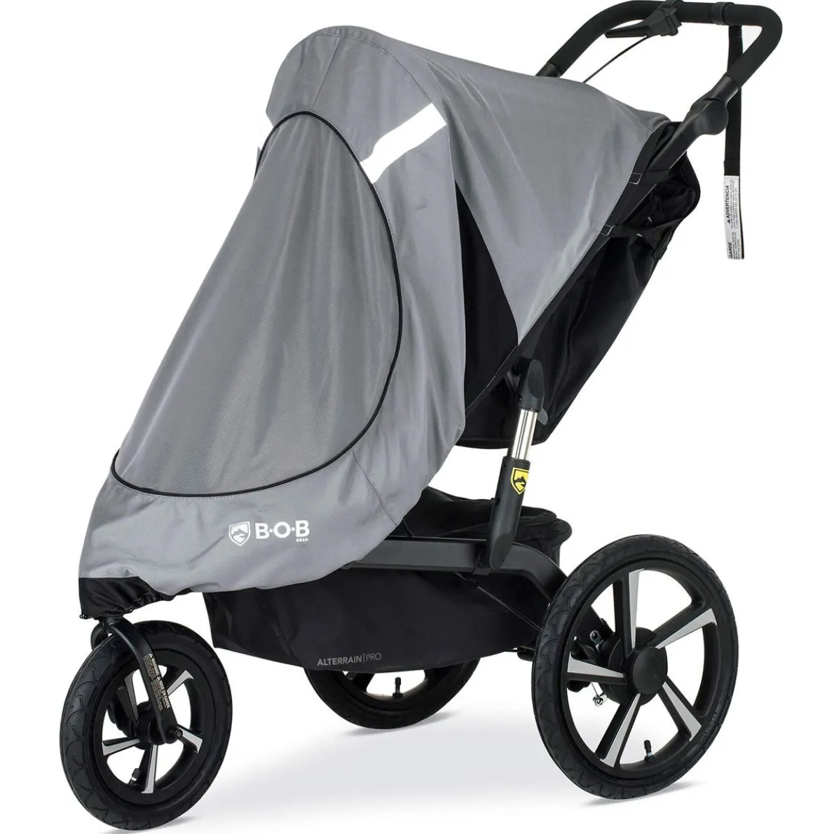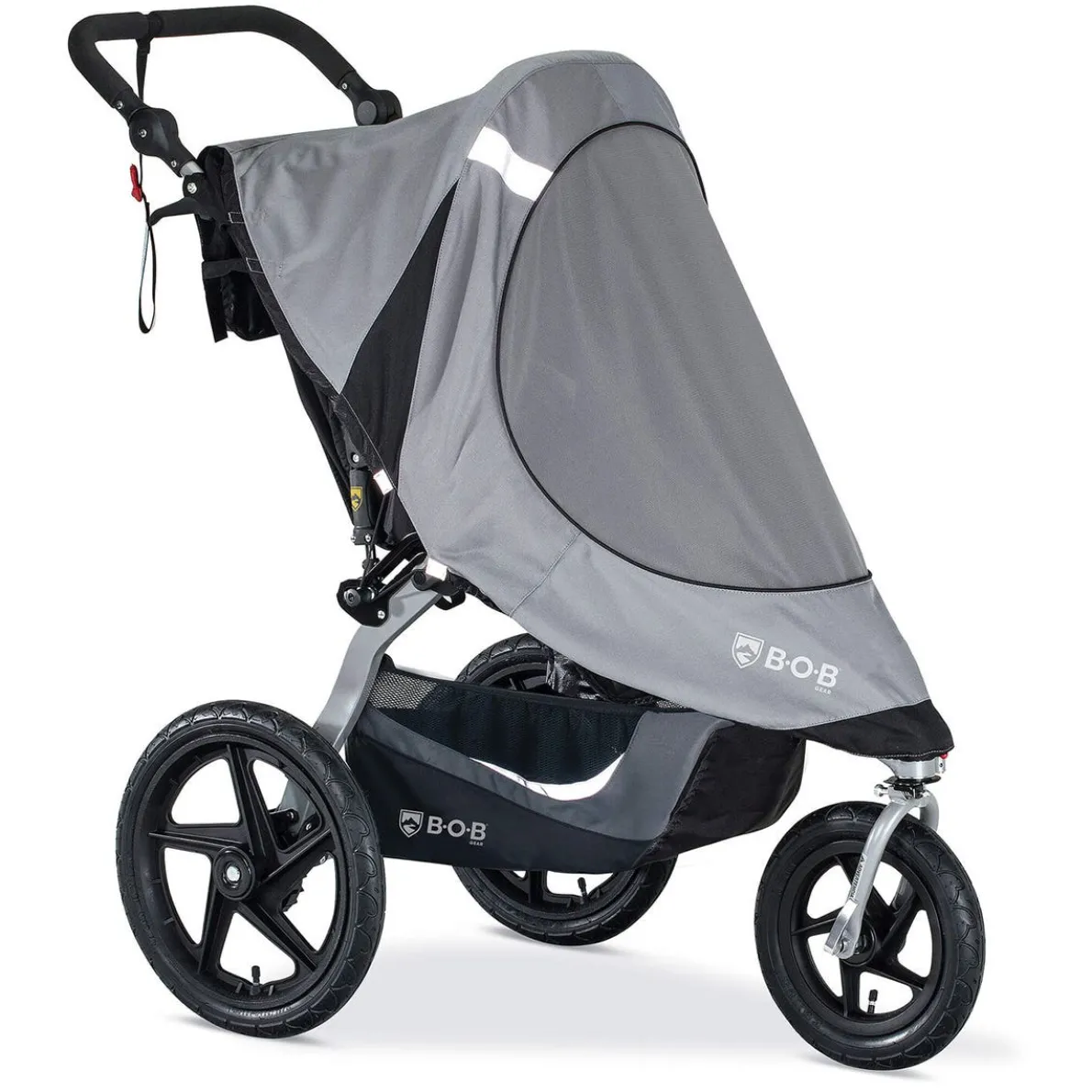 Protect your child from sun and bugs on all your adventures with the BOB Gear® Sun Shield for Single Jogging Strollers. Designed for a tailored fit, this accessory easily and securely attaches to your stroller.