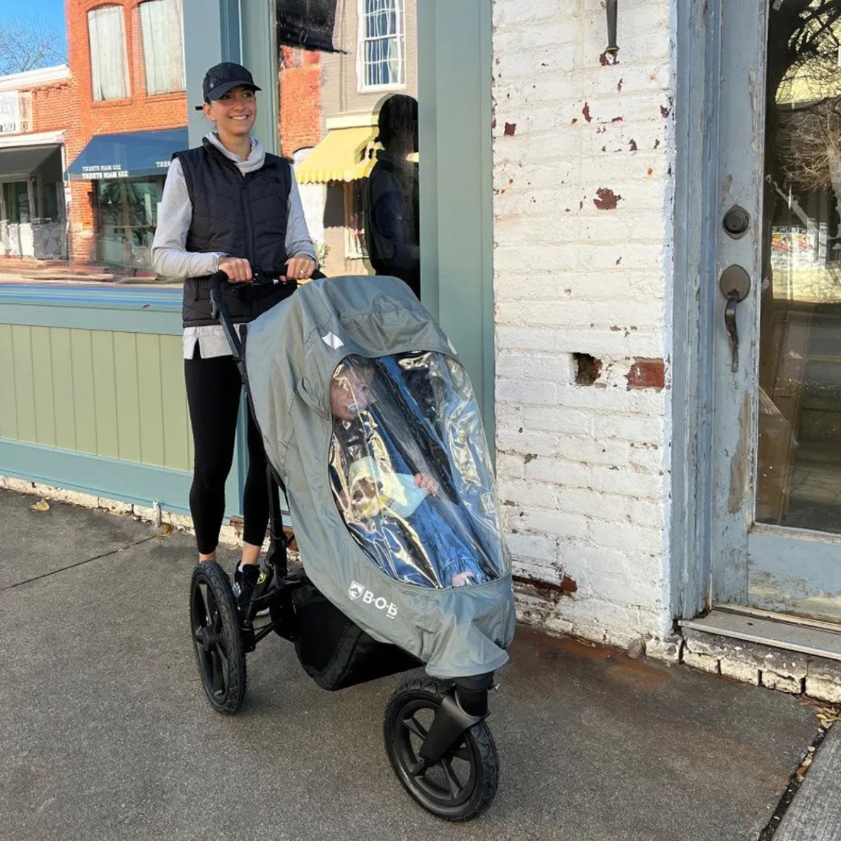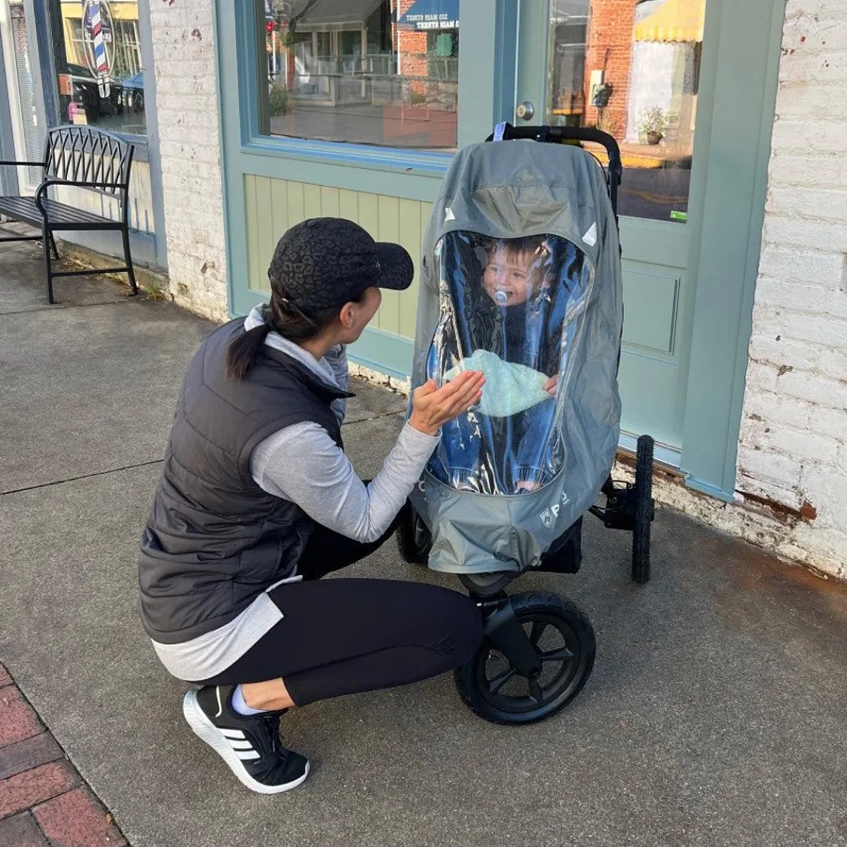 Keep your child protected & dry on adventures with the Weather Shield for Single Jogging Strollers. Wind- and water-resistant, with air-flow vents for breathability. Designed for a tailored fit, it easily & securely attaches to stroller.