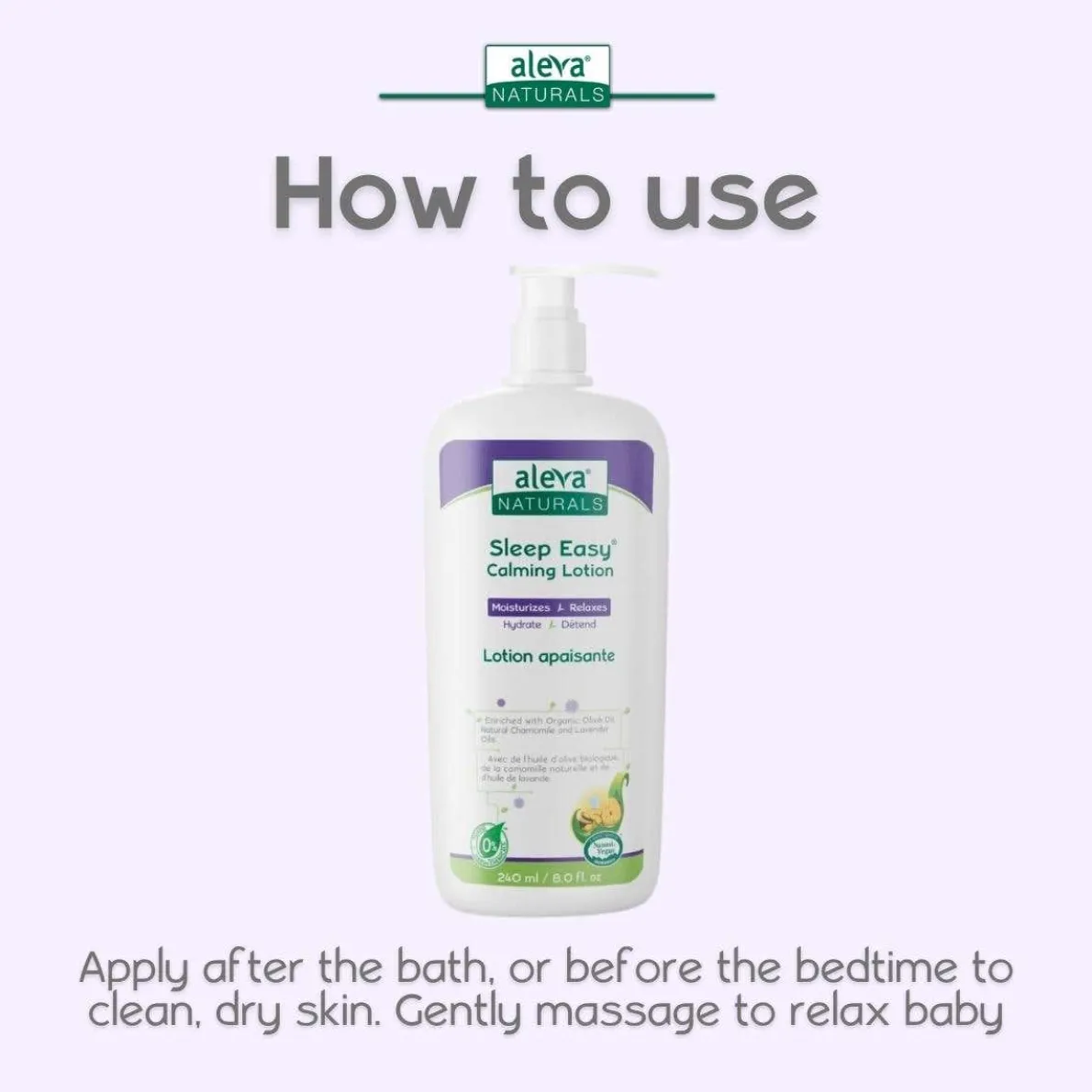 Have you been struggling to get your baby sleeping through the night? A moisturizer enriched with lavender oil can help to soothe and calm your baby to a long and restful sleep. Aleva Naturals Sleep Easy Calming Lotion is formulated to help pamper your baby as part of their night time routine. With a soothing blend of Lavender, Chamomile and Shea Butter, Sleep Easy Calming Lotion is gentle enough for newborn’s skin and will leave them smelling naturally fresh and clean! For best results, try using Sleep Easy Calming Lotion in combination with Sleep Easy Hair & Body Wash. Ideal from birth onwards.