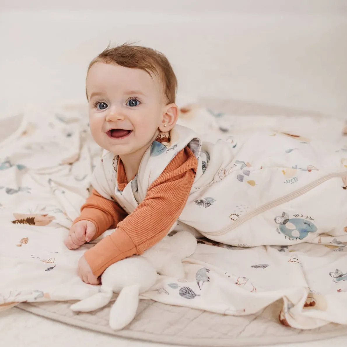 Made with TENCELTM Lyocell knit jersey and filled with Dupont Sorona filling. Both are temperature regulating, so your baby will be just warm enough, all night long.