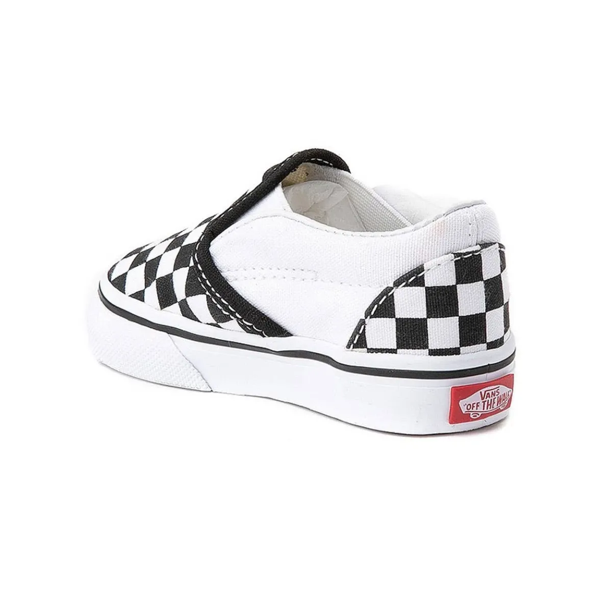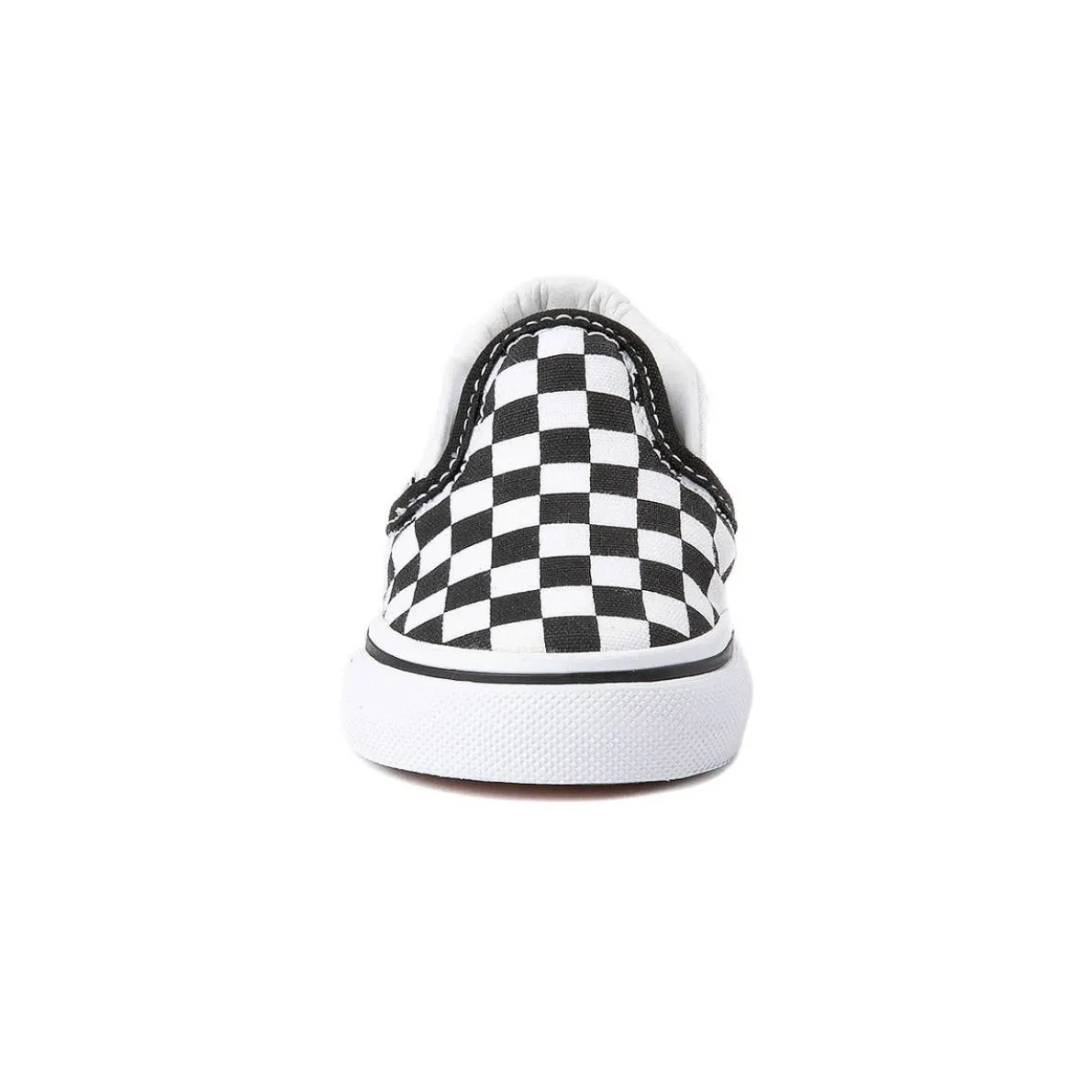 Keep their style in check with the Slip On Checkerboard Skate Shoe from Vans! This iconic slip-on sneaker sports a classic low profile design with signature checkerboard prints and vulcanized sole construction