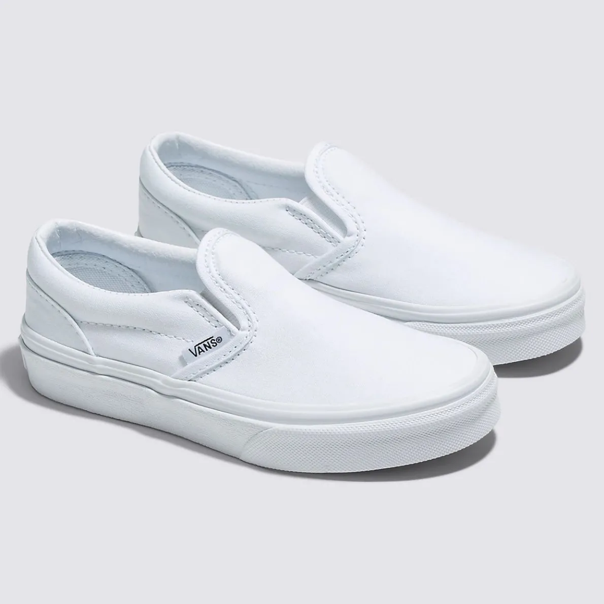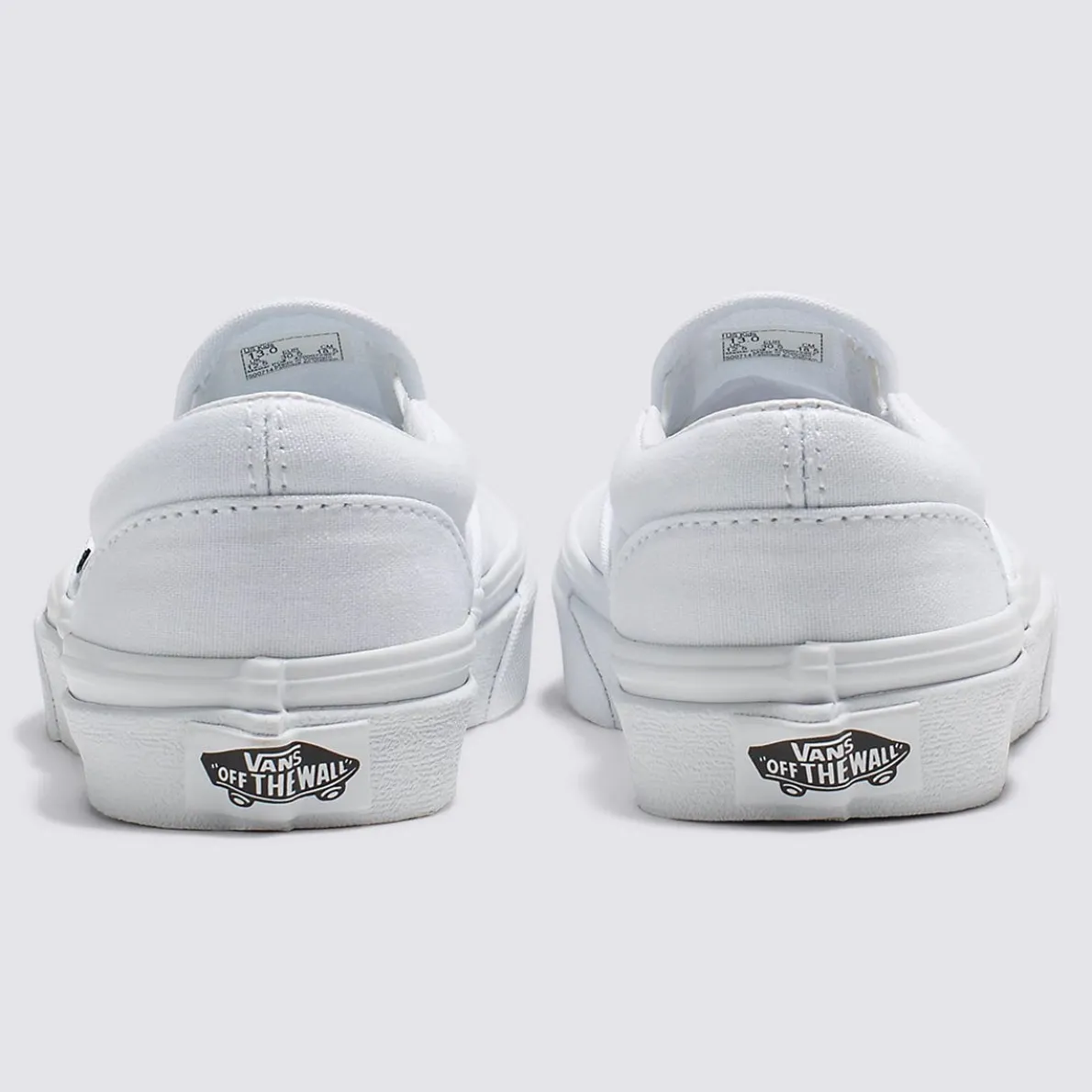 The Canvas Classic Slip-on has a low profile, slip-on canvas upper with elastic side accents, Vans flag label and Vans original Waffle Outsole.