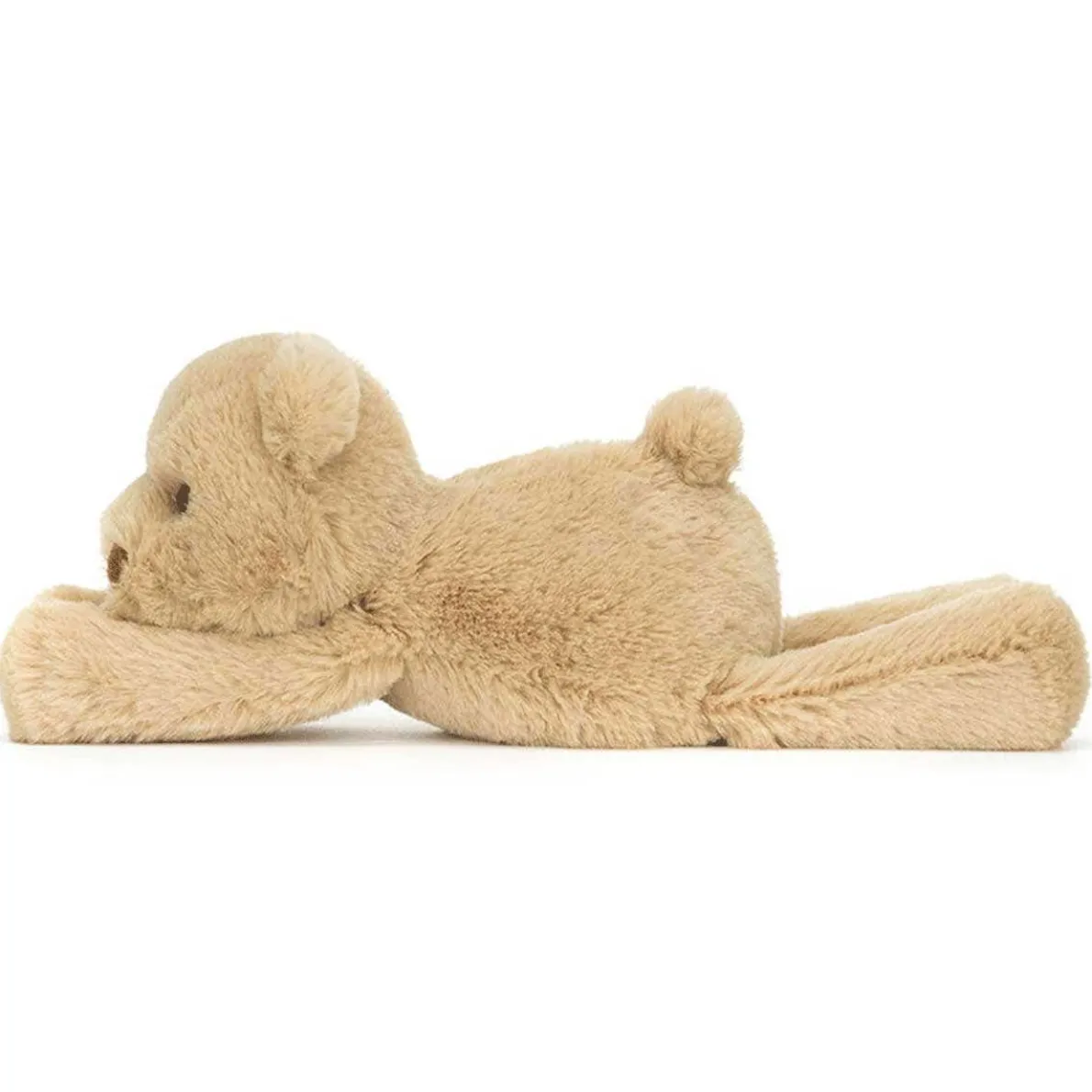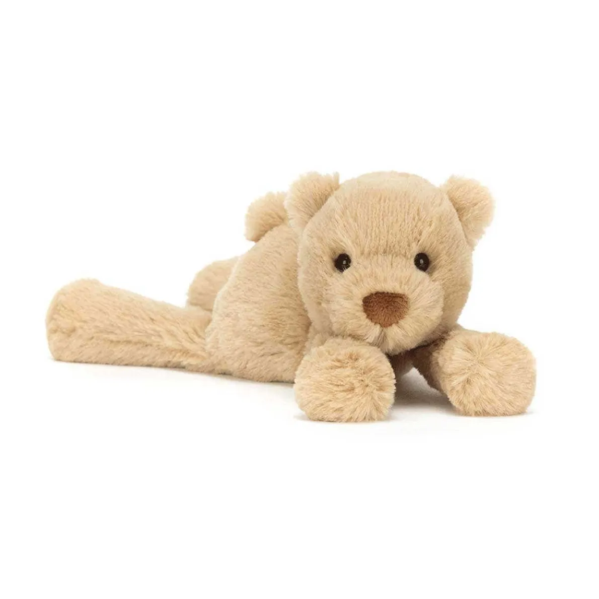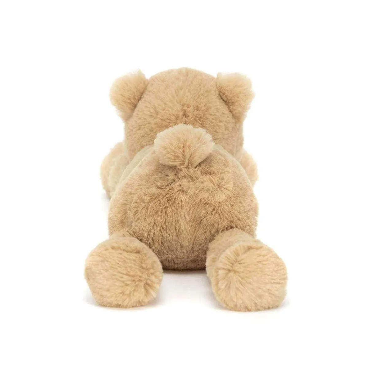 Smudge Bear is ready to snooze. It’s no surprise that this teddy bear gives a great hug, with silky soft fluff in shades of honey,and podgy trumpet paws. This peaceful cub is ready to snuggle up.
