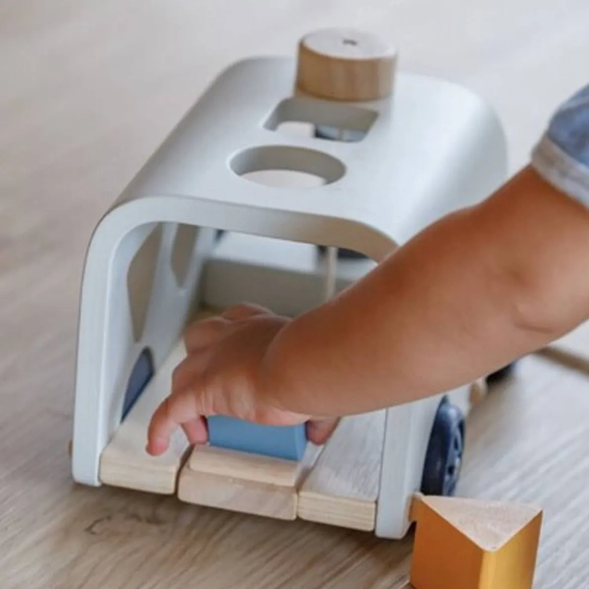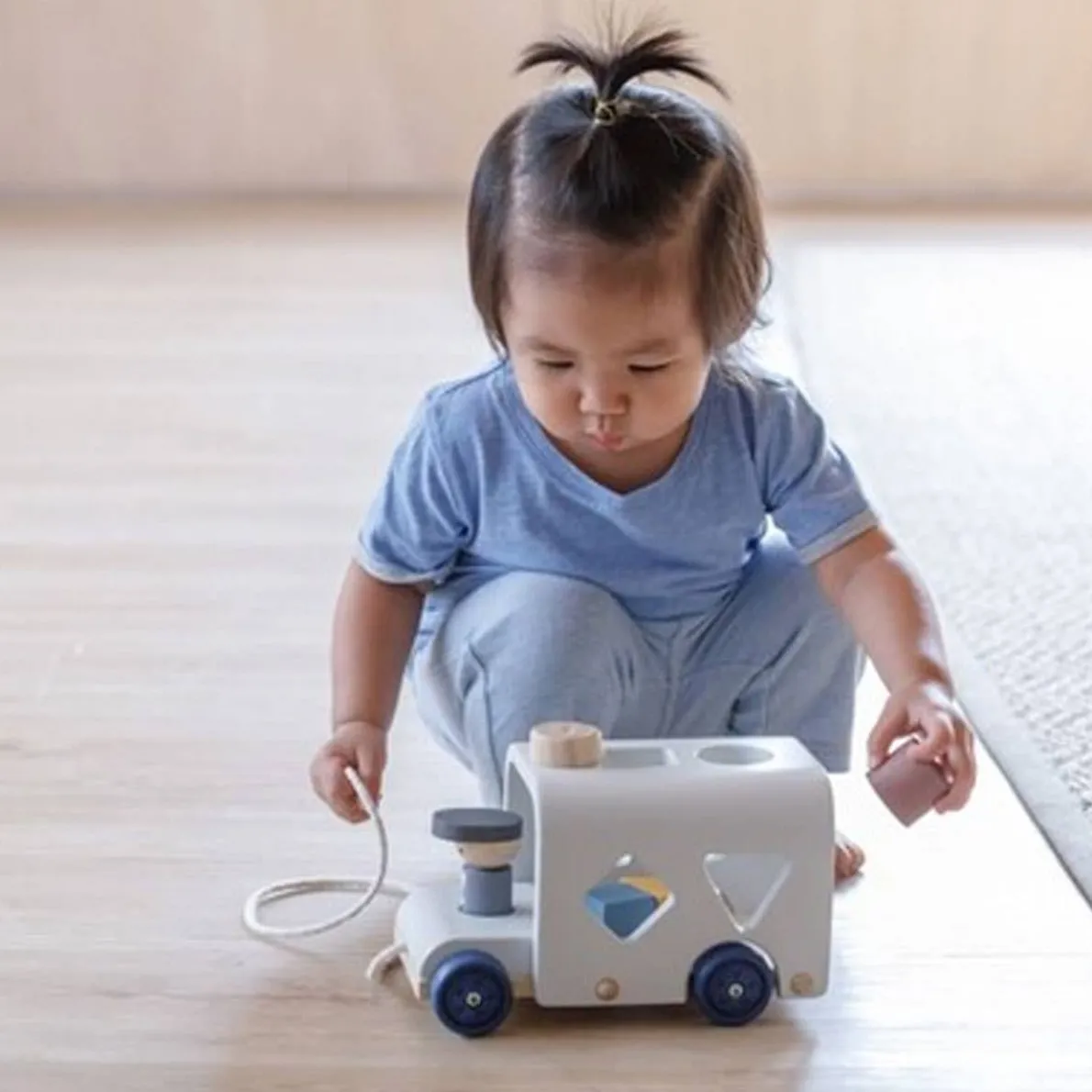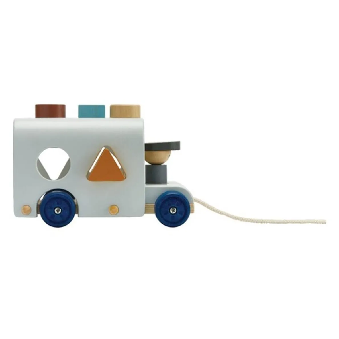 This Sorting Bus contains 3 colorful shapes. Pull the tab on top of the bus and all the pieces will slide out.
