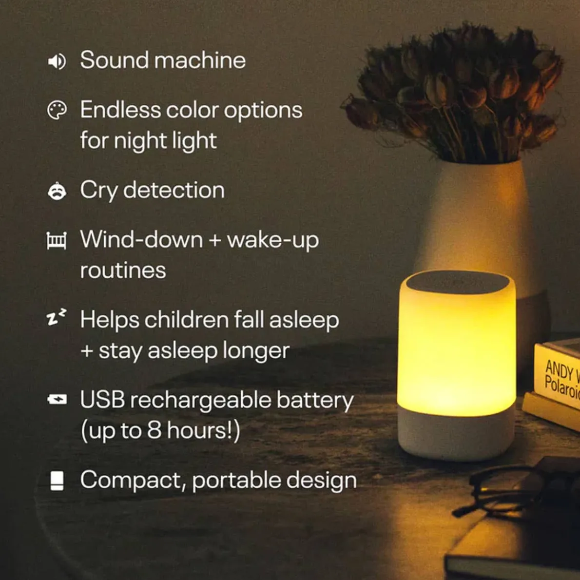 - Night light offers endless customizable color combinations to set the right scene for wind-down and wake-up routines
