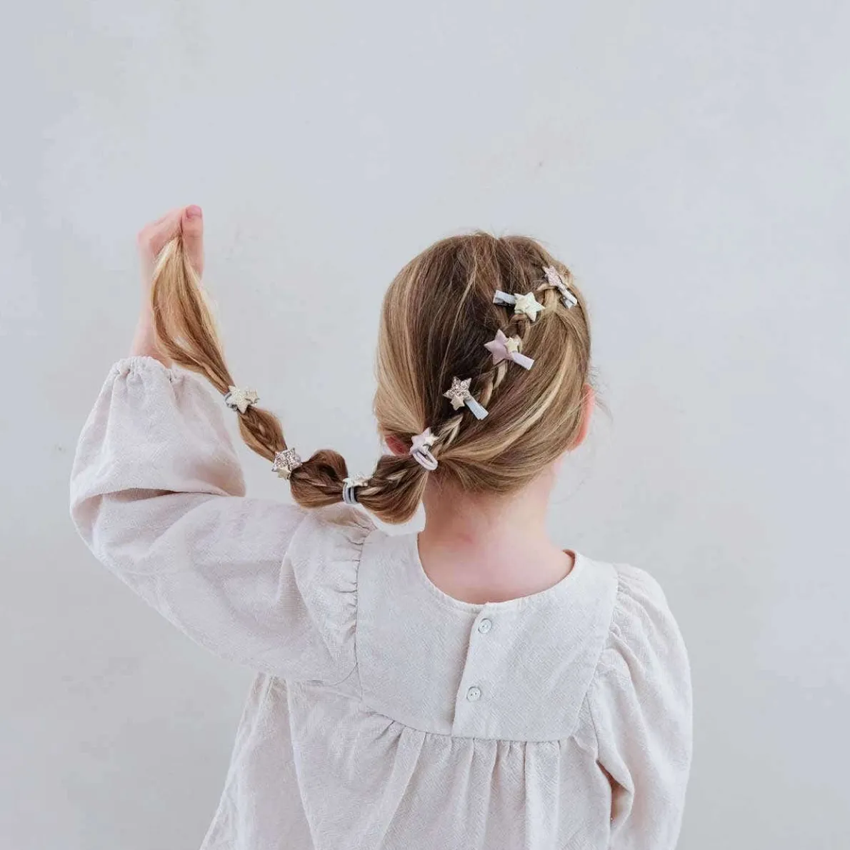 Add a little magic to their hair with our Sparkle star mini clips! Featuring layered stars in shimmering glitters and metallics, these clips are perfect for brightening up the festive season and any day after!