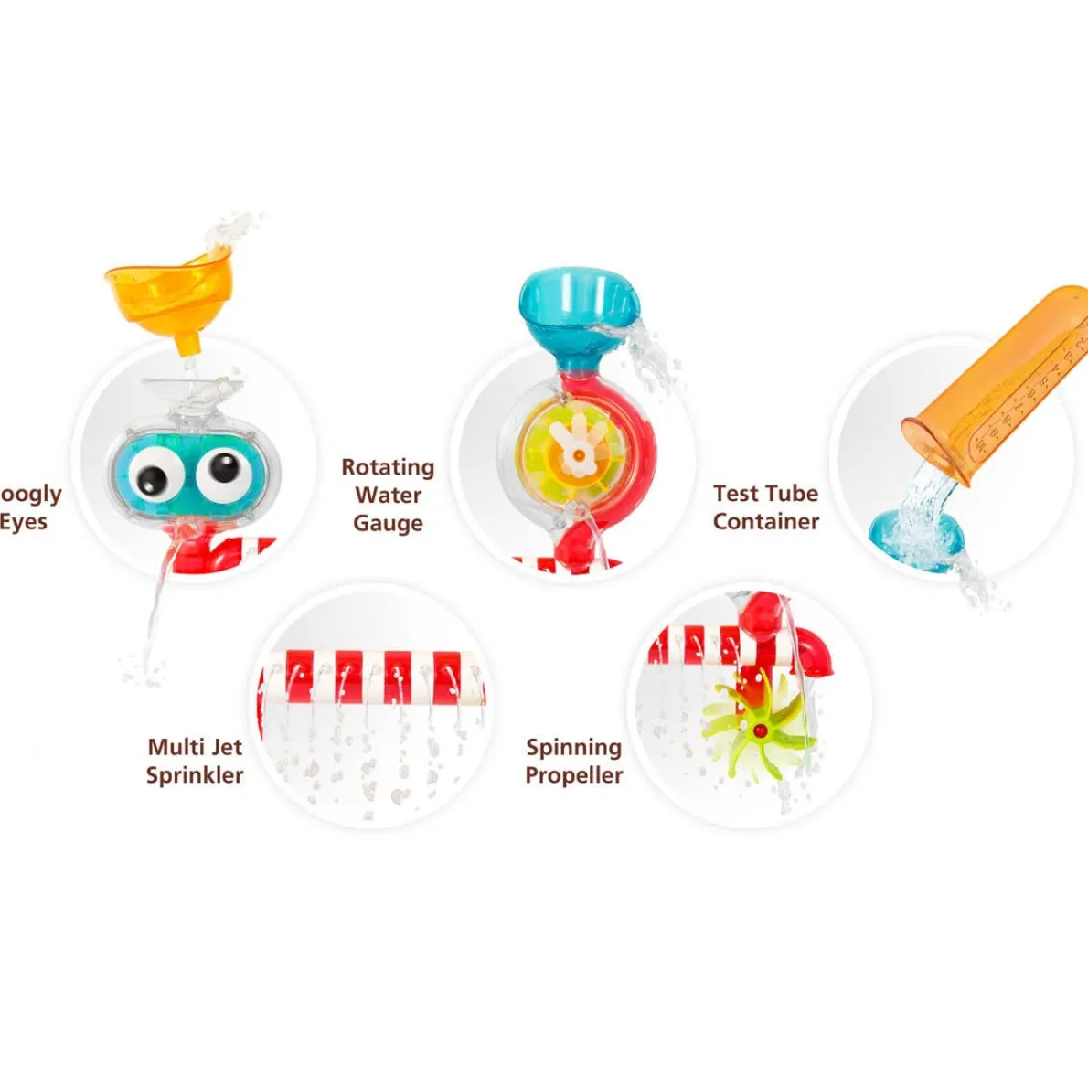 STEM comes to life with the pure power of water! This wacky mad-science lab sets off an exciting chain reaction of 10 surprising water sprays and endless curiosity – for budding scientists and water babies alike.