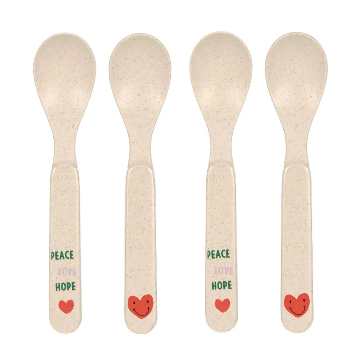 The children’s tableware collection by LÄSSIG includes a set of four spoons decorated with popular prints