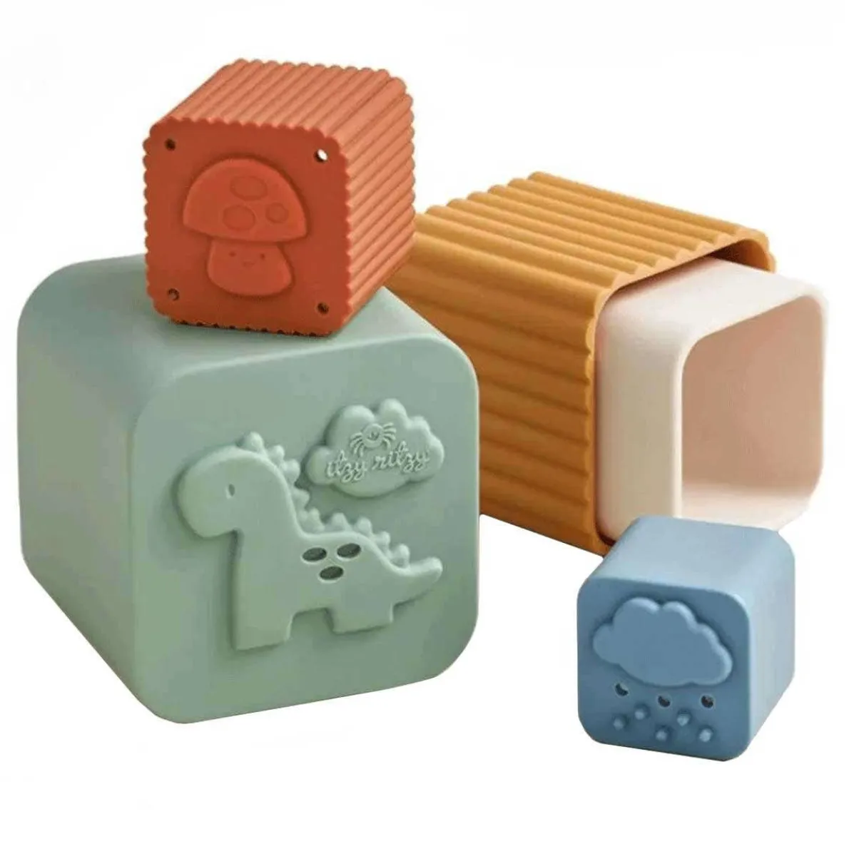 Sprinkle, stack, nest and pour with these Itzy Sprinkle Nesting cups by Itzy Ritzy. Made of silicone, featuring adorably patterned drain holes for pouring and play. These bath toys promote cognitive development and help to develop early motor skills. Bath time can be fun and educational with these nesting cups!