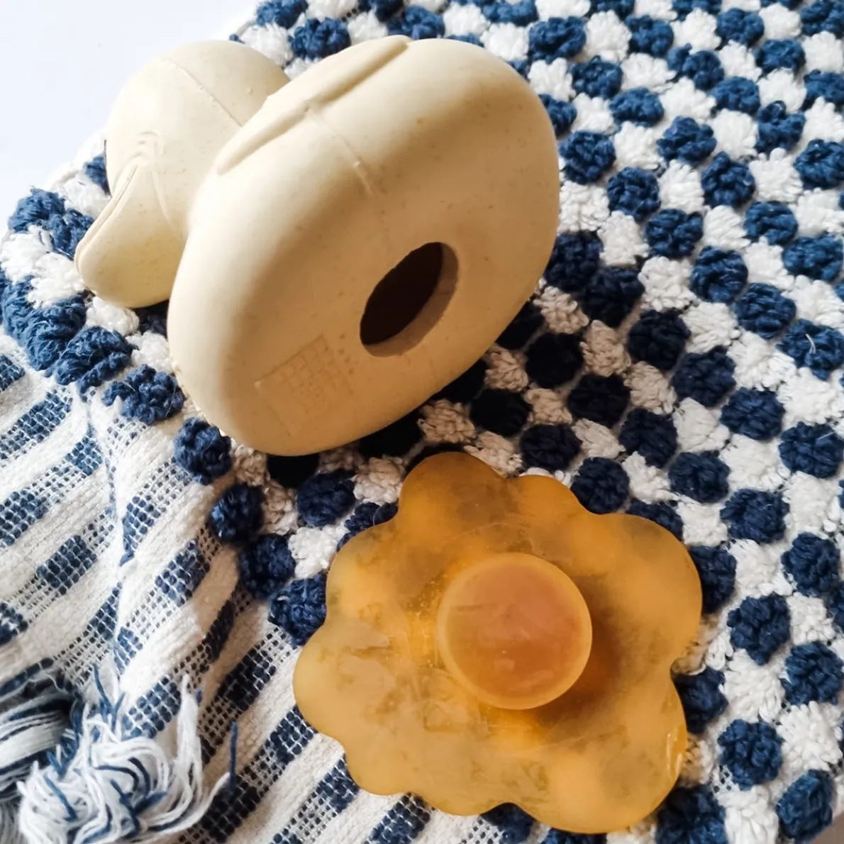 This upcycled bath toys are made from high-quality leftover or cut-out material from our natural rubber production. Instead of throwing away the material, we’re turning trash into treasure, giving it new life and thereby minimizing waste and in this way make truly positive fingerprints on the planet.