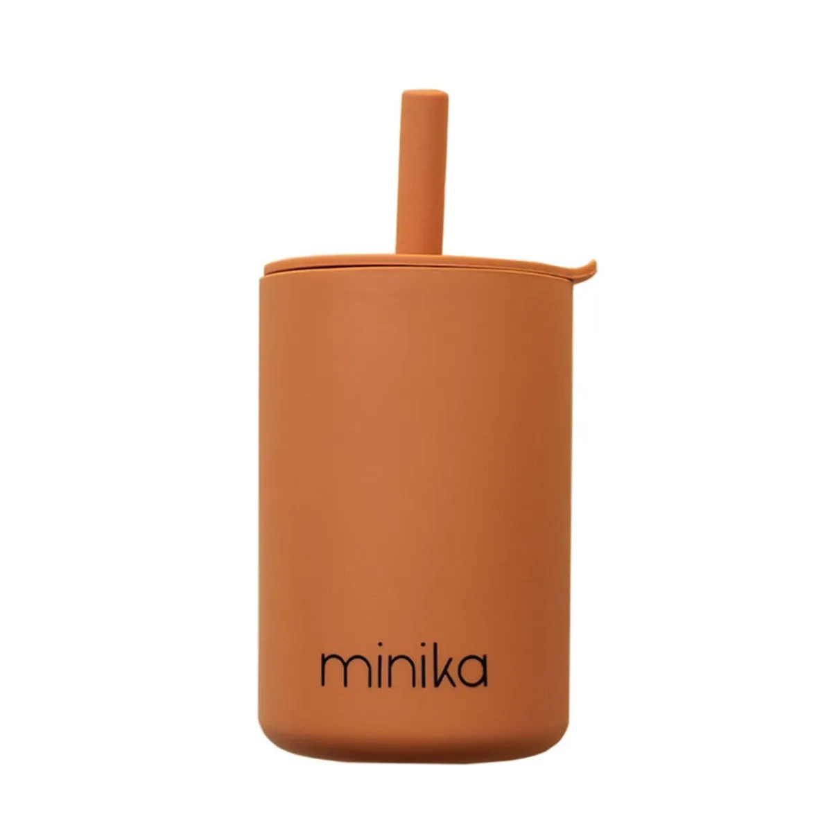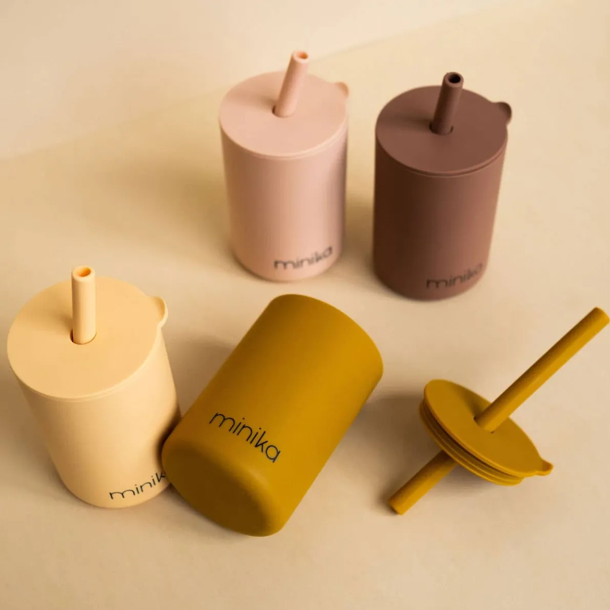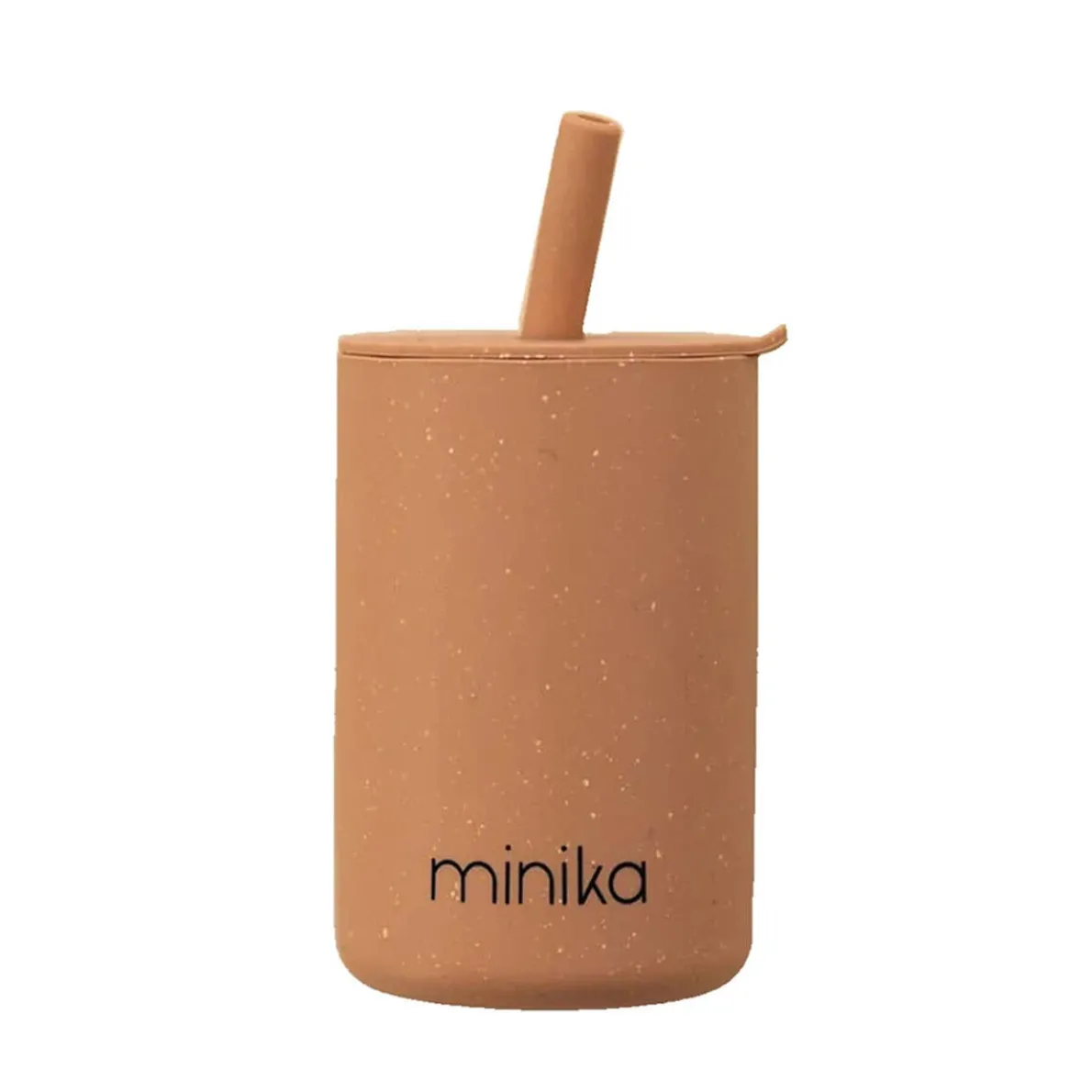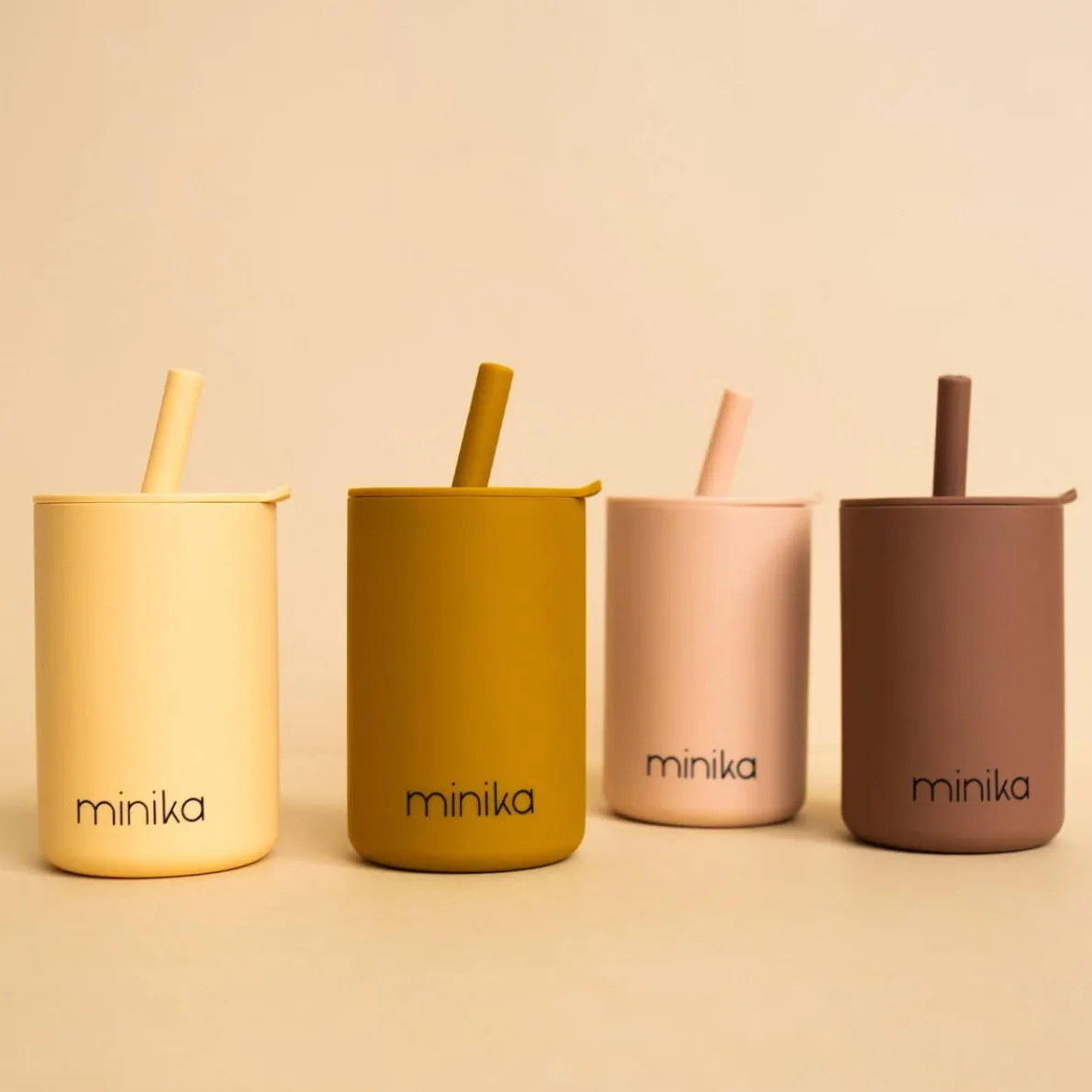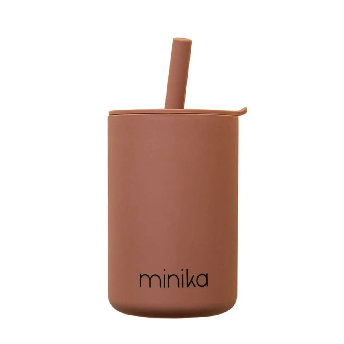 Simple and refined Glass with straw and lid. Non-waterproof.