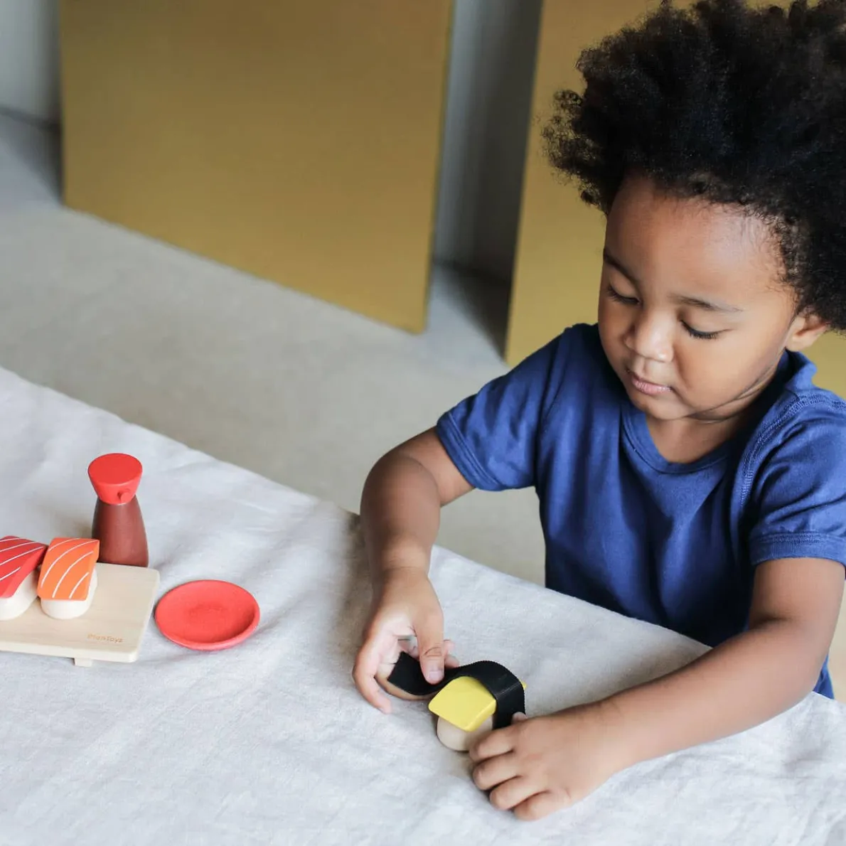 Pretend play as a sushi chef with the PlanToys Sushi Set! While developing creative thinking and fine motor skills, hand-eye coordination and more, children can serve up sushi dinner for the whole family. Complete with salmon roe made from PlanWood™, tamago, shrimp with a rubber tail, tuna and salmon – 2 sheets of seaweed can be wrapped around the included pieces of rice for a realistic feature! A sushi tray, shoyu bottle and sauce dish add even more dynamic.