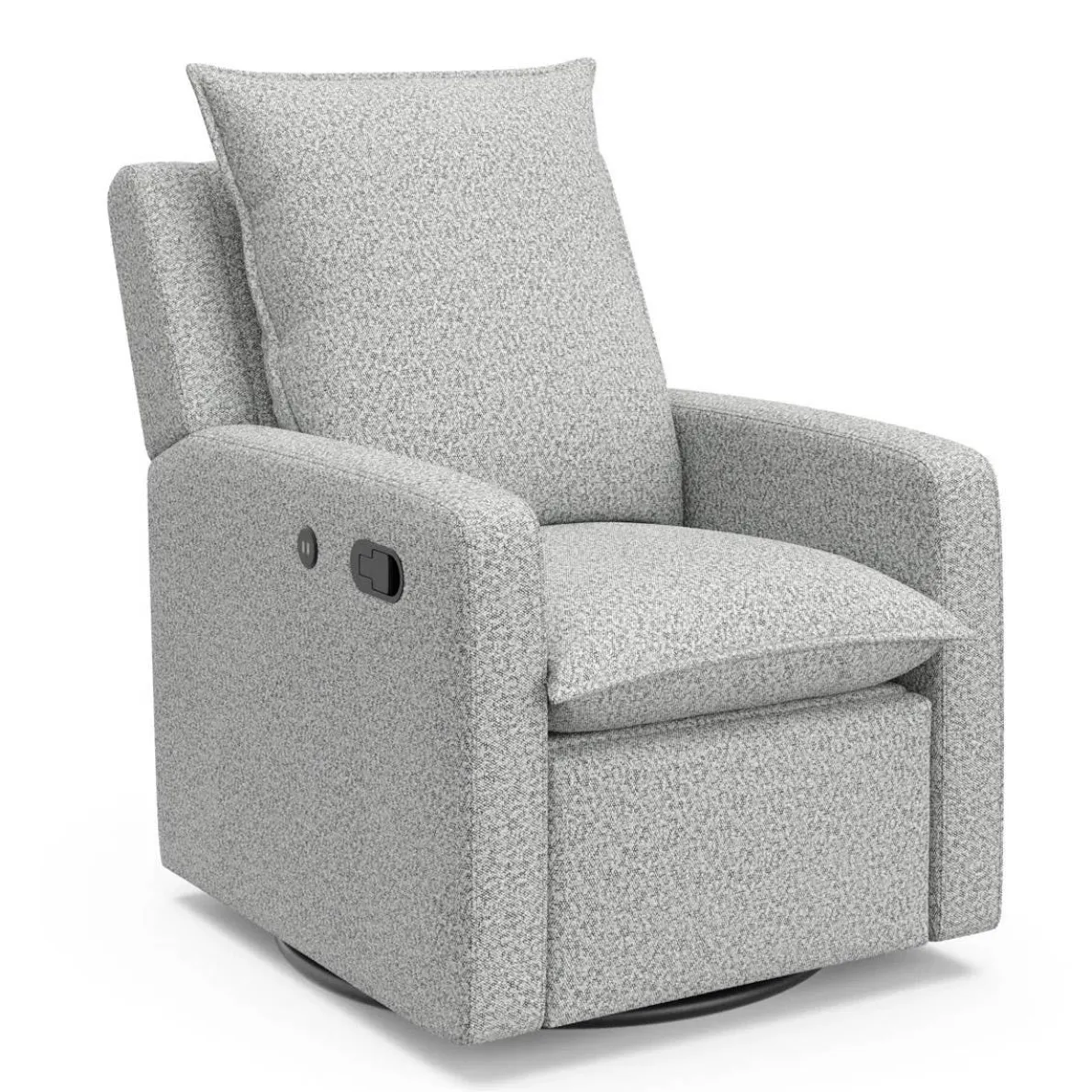 This is destined to be the site of hours of snuggles, feeding sessions, story times and so much more for many years to come. That’s why comfort, function, and style should all be considered and that’s exactly what we did when we designed this combination recliner and swivel chair. From the easy reclining feature to the plush cushions to the two USB ports, you can make yourself very comfortable here. (With or without a baby in your arms!). Anyone in the family would be comfortable. With super plush cushions that are both upscale and perfectly cozy, you will be comfortable for marathon feeding sessions. The track arms are made to help you easily settle in and get out of the chair. Available in Salt & Pepper and ivory, you can get one that complements your decor. You can also rest assured, as it’s been expertly tested to meet all applicable federal safety standards for the category to ensure the safest environment for your child.