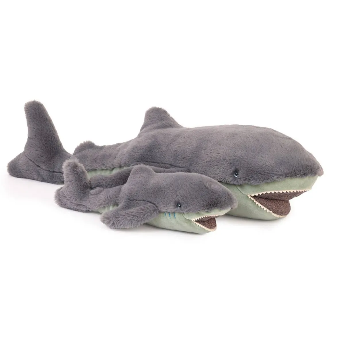 A large shark with glitter fins, you don’t see that in most oceans! This one shimmies around your bedroom with fur on his back, velvet on his tummy and a permanently open mouth to show off his perfect teeth!