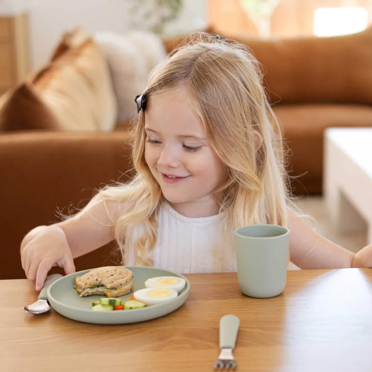Big Bites forks and spoons are ergonomic for growing hands but with serious function. Made with dishwasher-safe non-toxic silicone for easy gripping, and stainless steel materials.