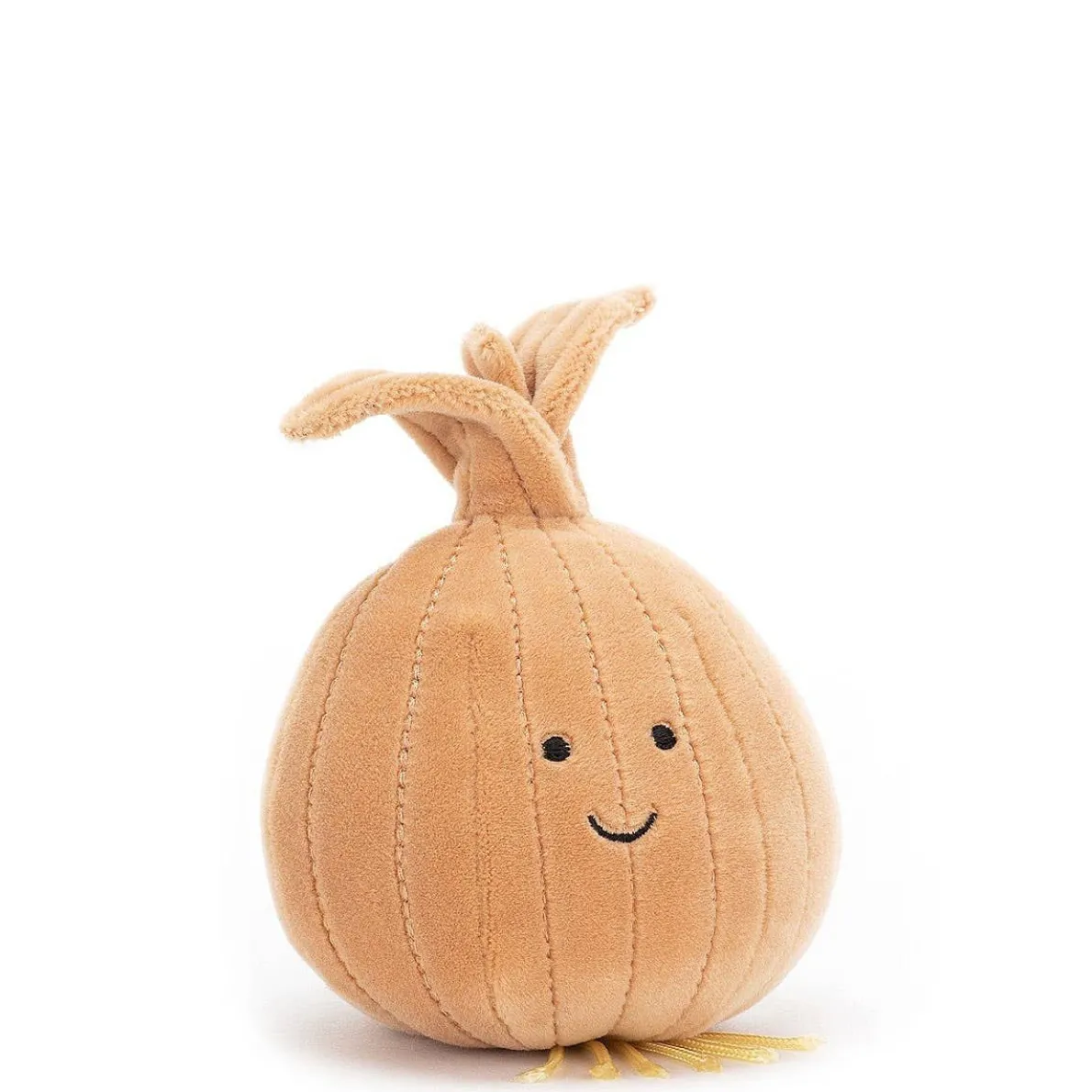 Onions make some people cry, but Vivacious Vegetable Onion is such a giggler, you can’t help laughing too! Squidgy and stretchy, this plump onion has stitchy detailing, a sweet little smile and a funky foldy punky hairstyle. Oh, and psst! This onion has ticklish roots!