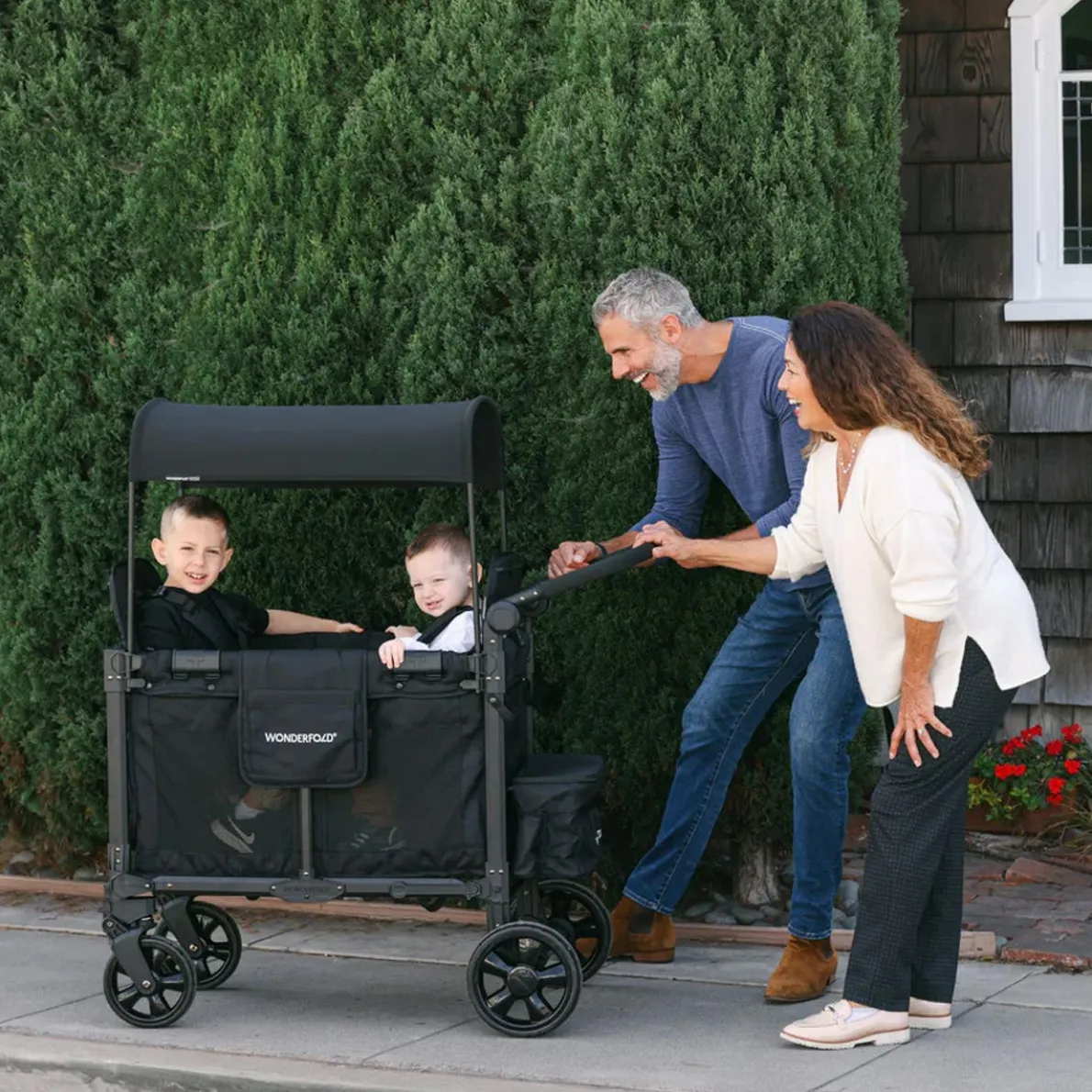 Meet the W2 Elite Pro Stroller Wagon, your go-to for unforgettable family adventures! With room for up to two kids, enjoy comfy rides with elevated, reclining seats that can face forward or parent-facing. Easy loading, lightweight aluminum frame, smooth all-terrain wheels, and an adjustable neoprene handlebar make every outing a breeze. Safety is key with a 5-point harness and sandal-friendly brakes. Stay organized with plenty of storage, a removable canopy, and roll-out shade. Fold it up easily and focus on making memories, not the logistics!