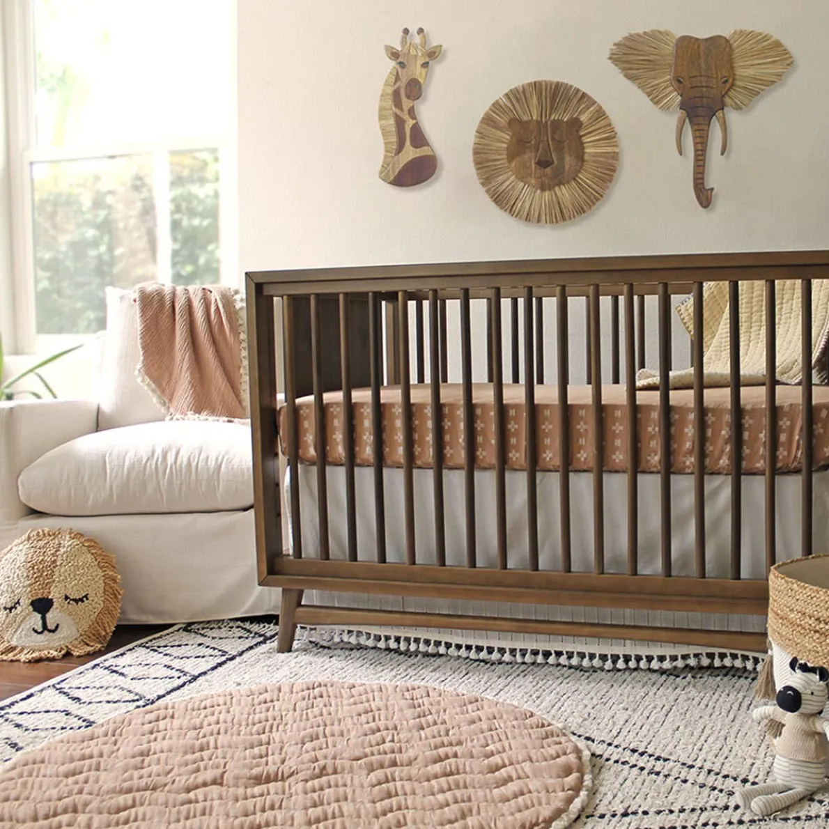 This wall décor is the perfect addition to any nursery. Featuring handmade craftsmanship with beautiful natural wood, It looks best when paired with other wall décor. Handmade details paired with the natural materials of these pieces perfectly compliments the Crane Baby bedding sets for a curated look. The charm and elegance of this nursery wall décor makes it a must-have for any safari or animal themed nursery