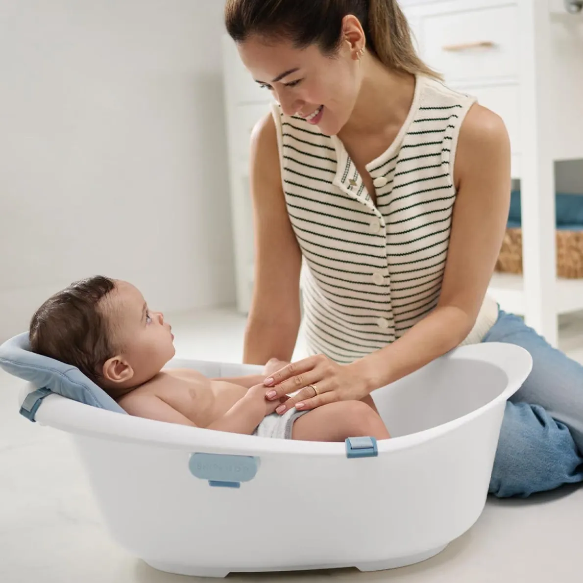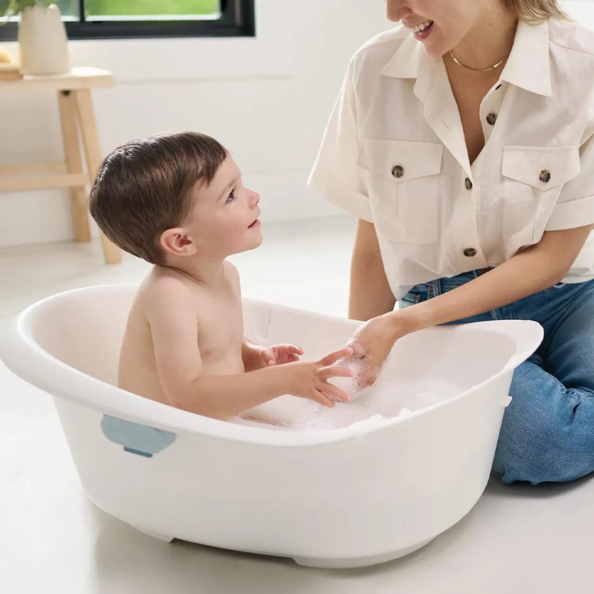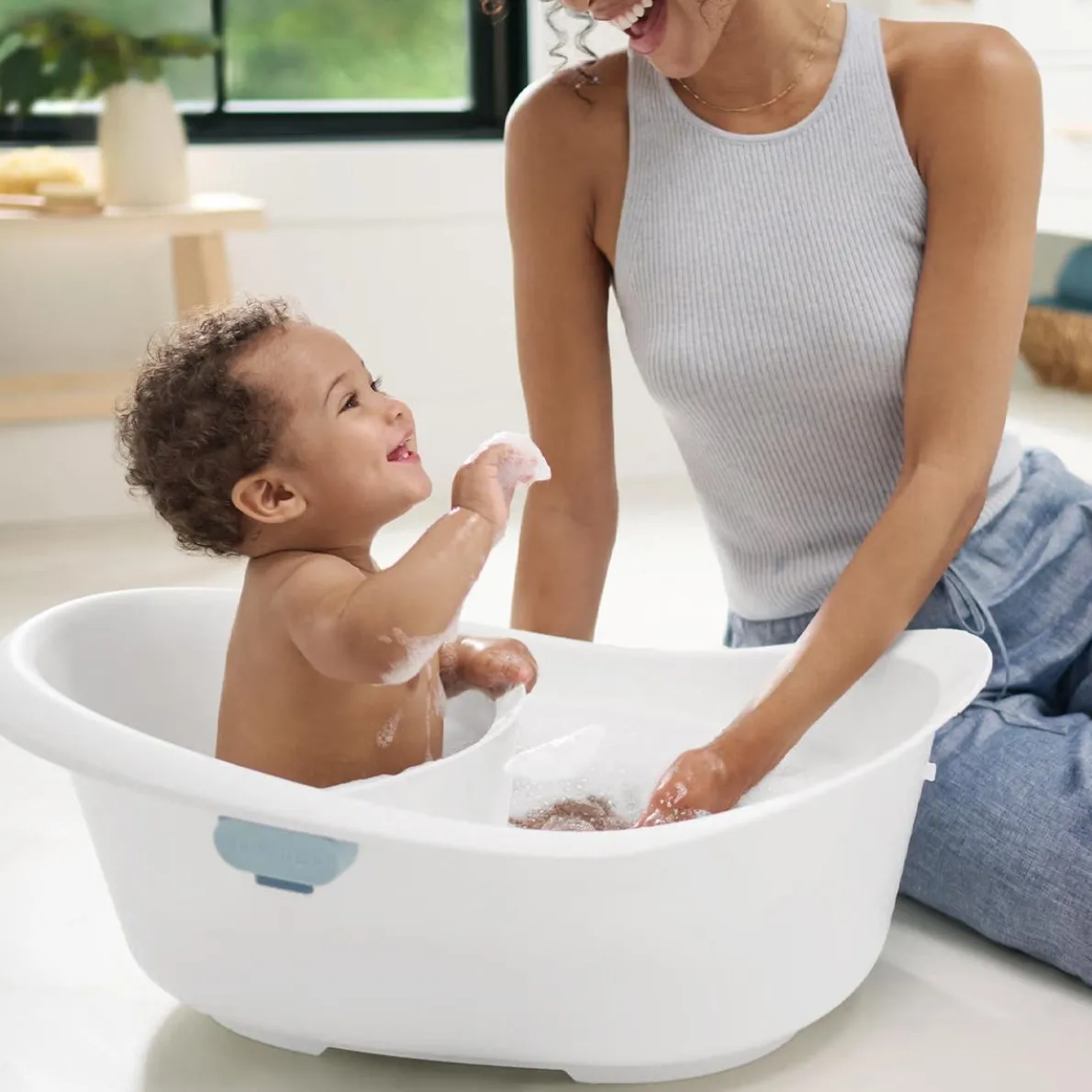 Designed to grow with baby in four stages—from infant to toddler—meet the only tub parents need! Filled to the brim with innovative details for baby’s comfort, The Wave 4-in-1 Baby Tub includes a supportive sling that can be used in two positions to help make infant bathing easier and less stressful for both parents and baby. As baby grows, remove the sling bather and add the included sit-up support insert to help little ones stay comfortably seated in the tub. Once your little one is able to sit up without support, use the tub on its own. The spacious, yet streamlined design features higher sides for extra splashing space (and extra tub time fun)!