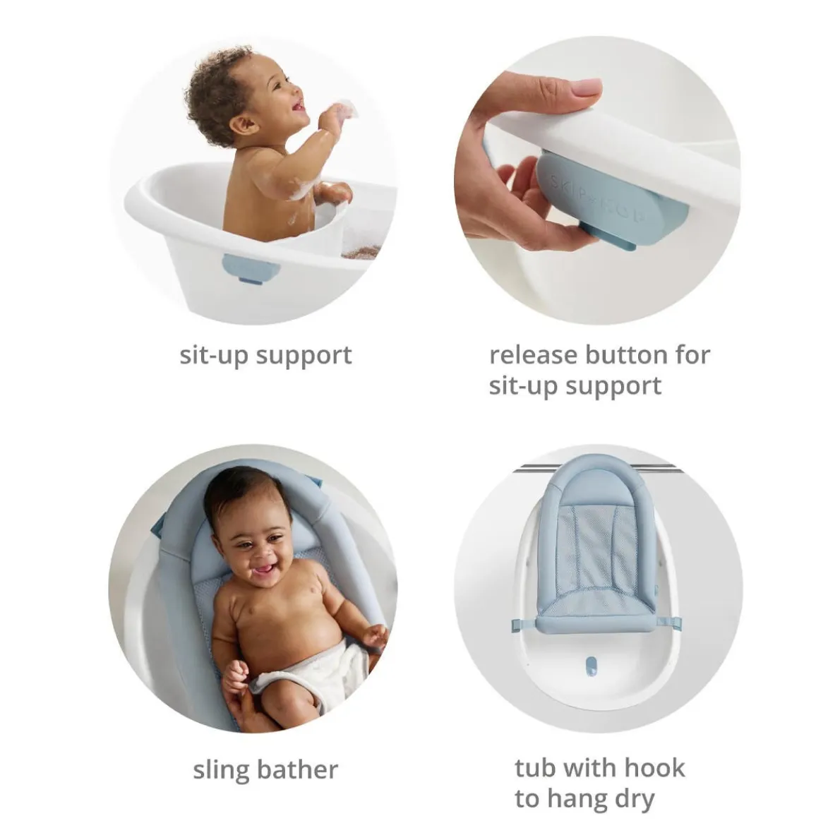 - 3-piece set includes: Tub, Supportive Sling Bather & Sit-Up Support Insert
