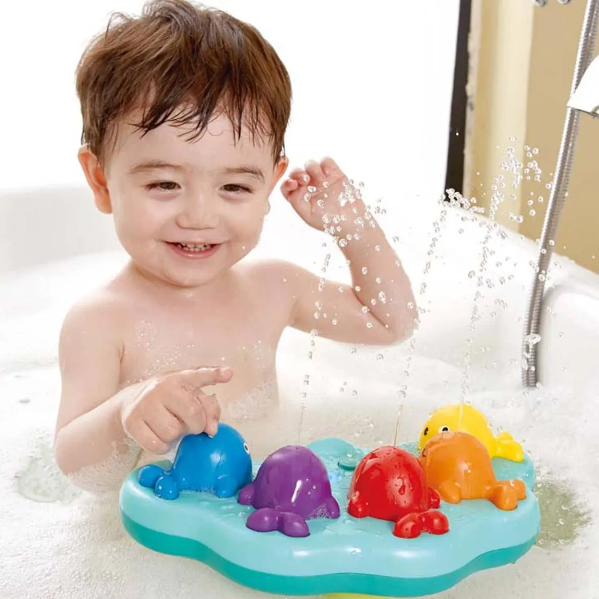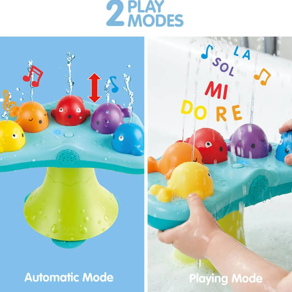 Make bathtime magical with this wonderful musical whale fountain! Choose between watching the fountains dance to music or play each whale like the keys of a piano! Simply stick to the bottom of the bath with the attached suction cup.
