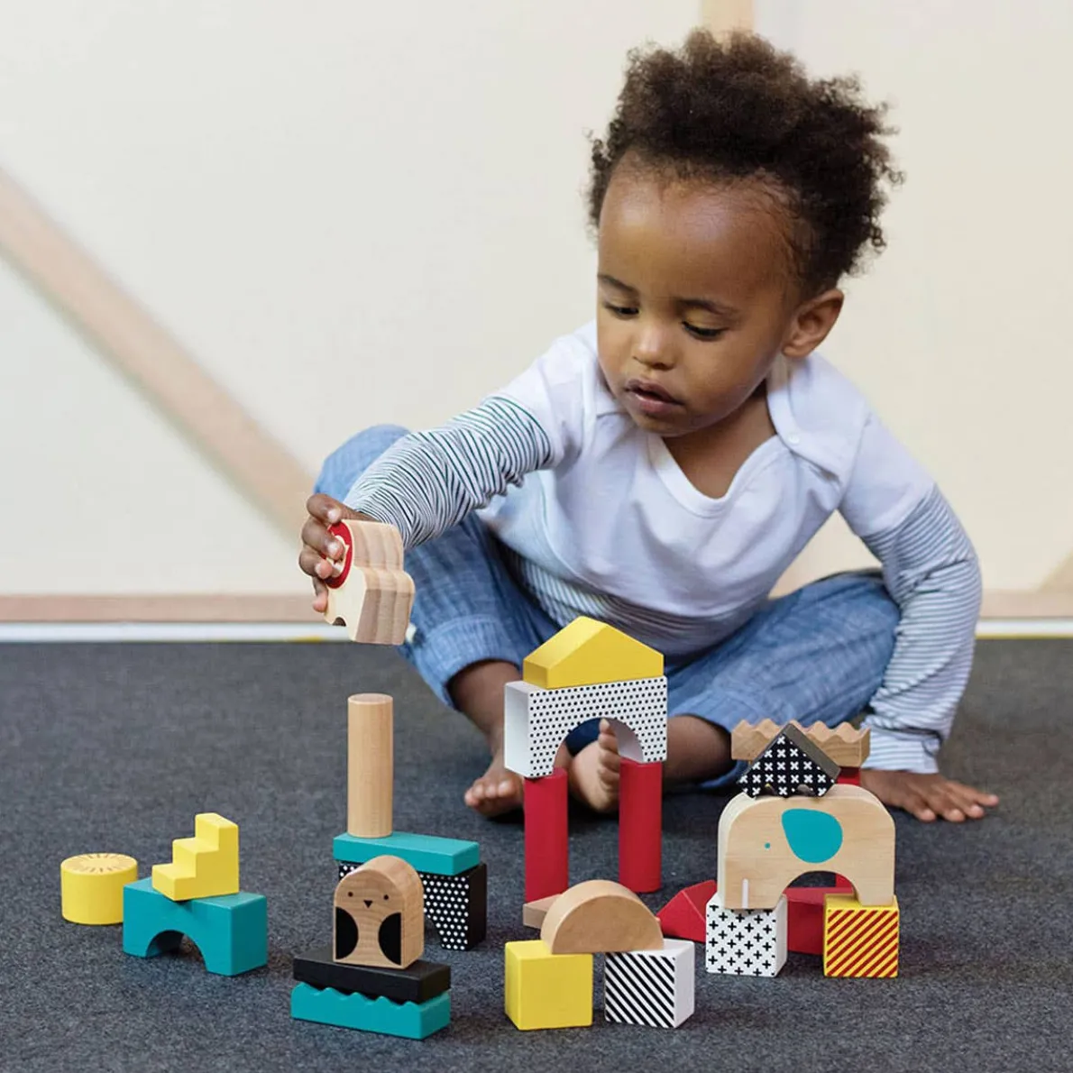 - Learn about shapes, colors and patterns with these versatile and chunky shaped wooden building blocks