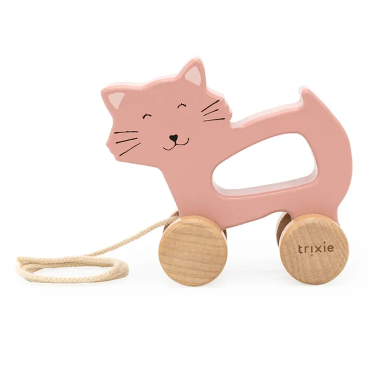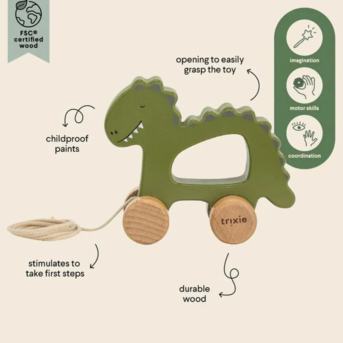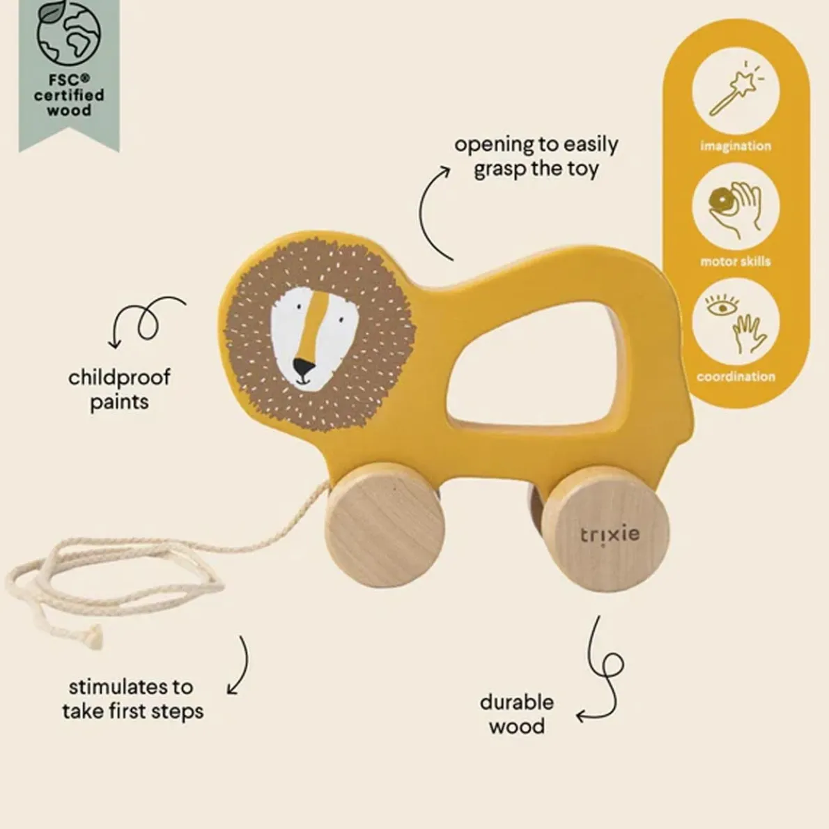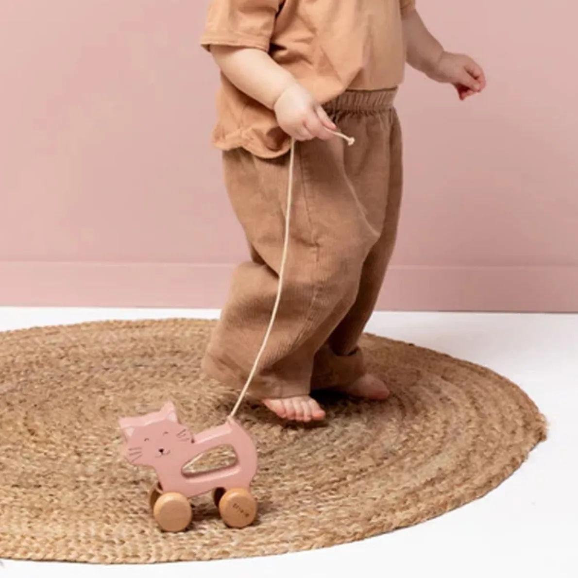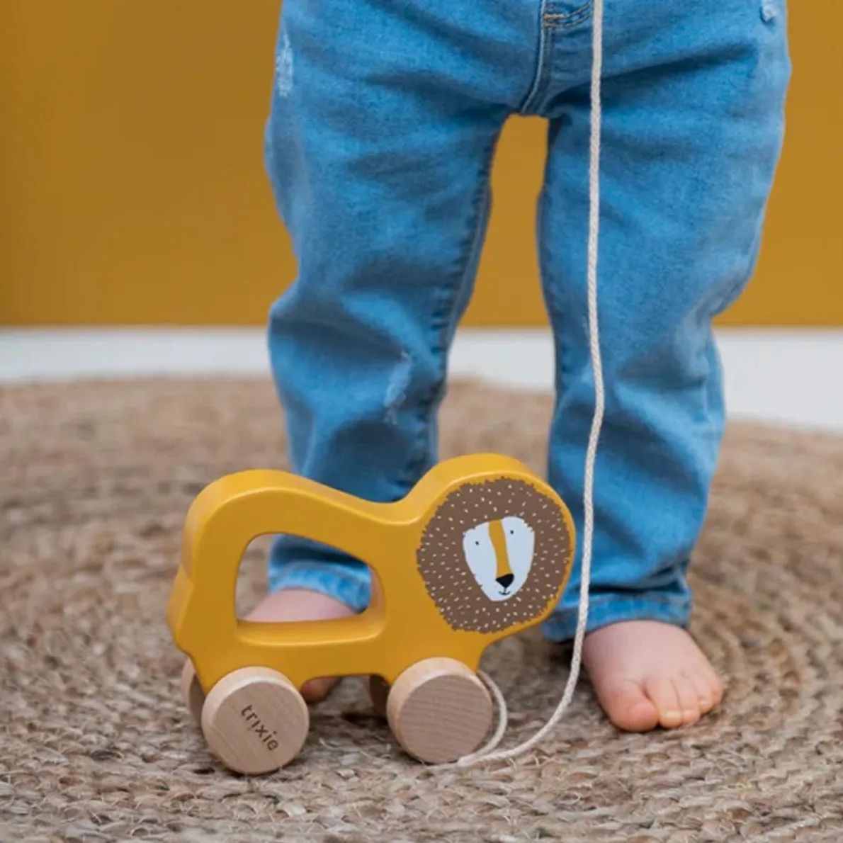 This friend will accompany your little one on its very first steps! With the cotton string children can pull their favourite animal along on a walk. The opening in the middle makes it easy for children to grasp the toy and push it around. The pull along toy is made of 100% FSC® certified wood. All paints on this product are water-based, safe for children and non-toxic. The pull along toy is available in many different animals.