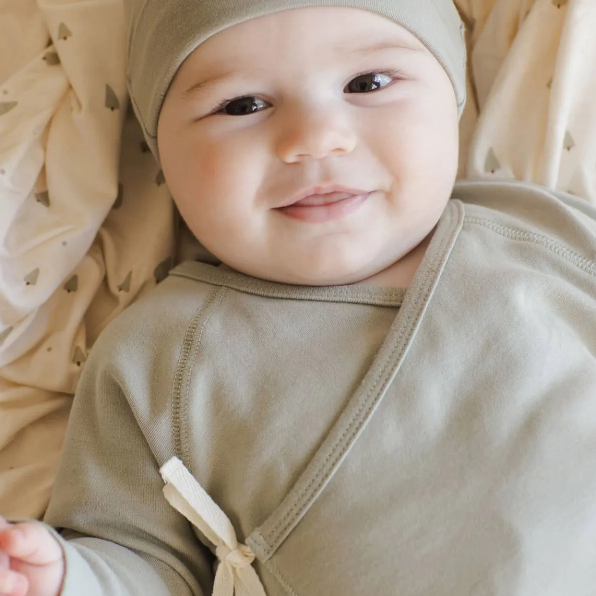 Bring baby home in this sweet set, featuring a long sleeve wrap top with an inside snap and a side tie, paired with matching drawstring footed pants for a cozy, coordinated look.