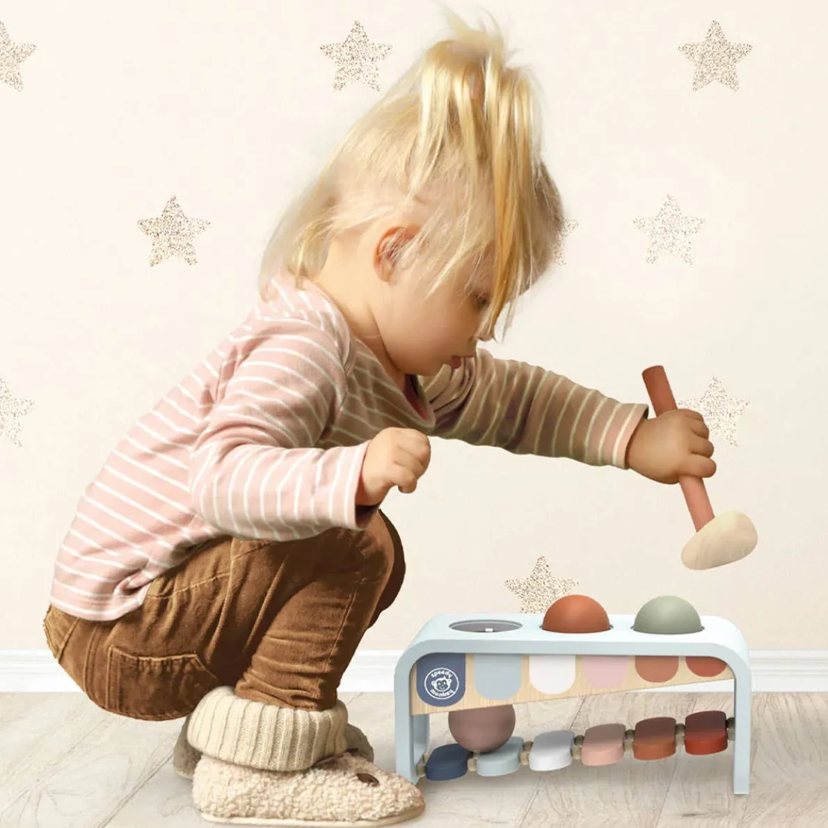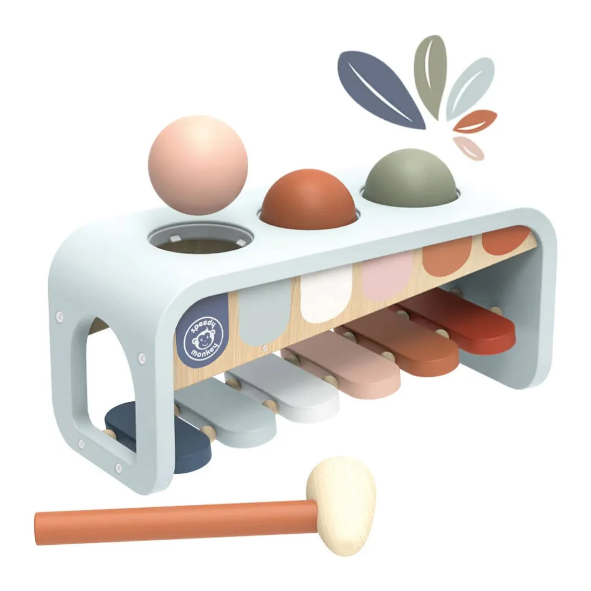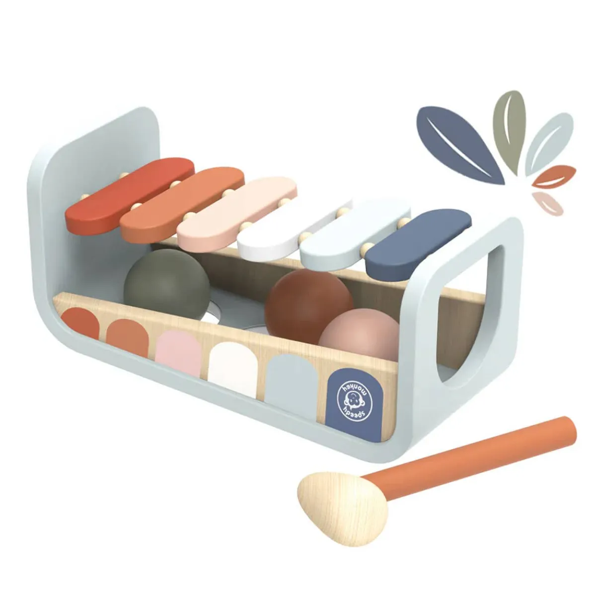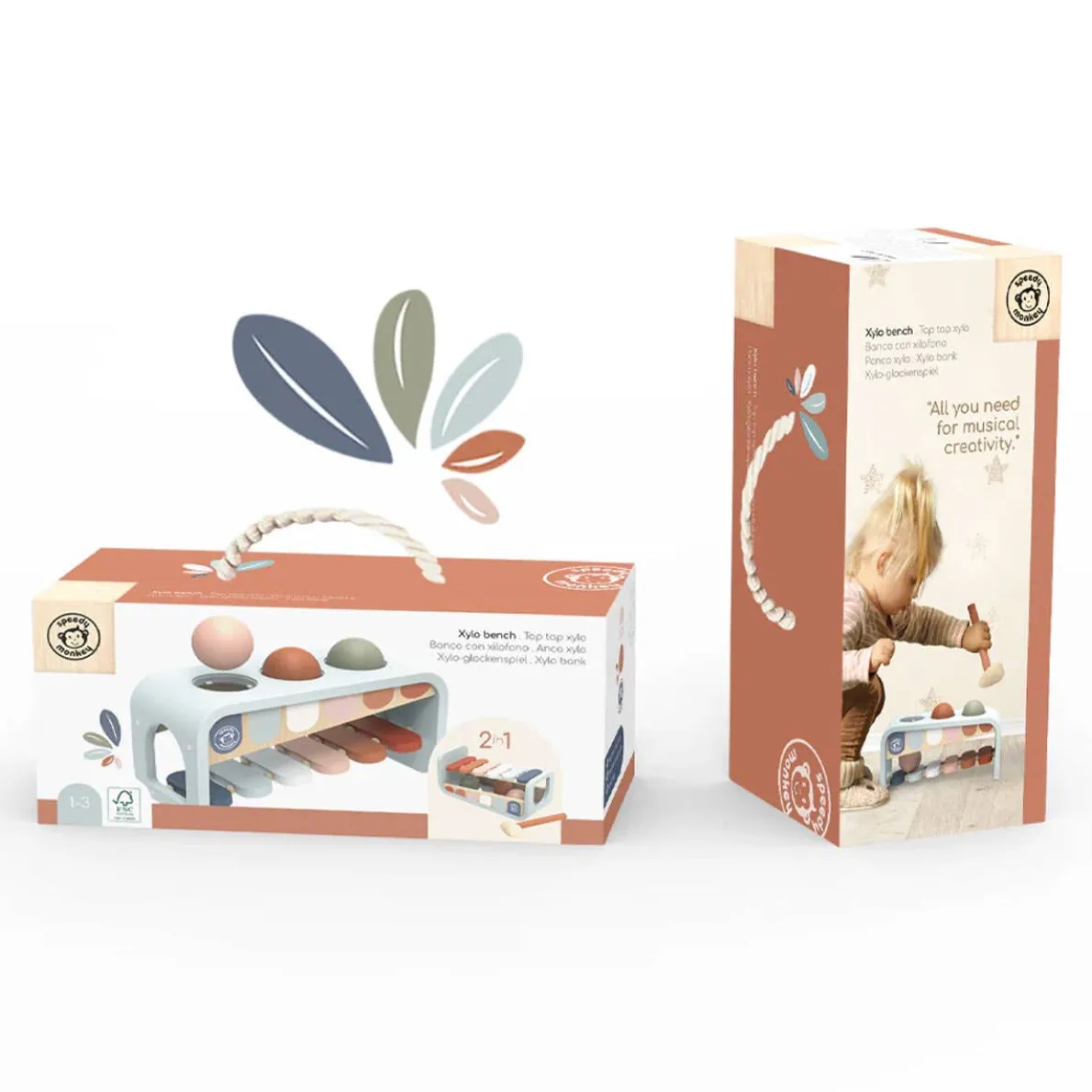 This all wooden Xylo “bench” 2 in 1 is colorful, durable and safe with no rough or sharp edges. It includes three balls which your little one can hammer down into the slots and slide on the wooden xylophone under. This fun toy helps your toddler acquire logic, coordination, and cognitive ability. This toy is crafted from sustainably sourced wood from FSC® certified forests. Presented in a beautiful gift box.
