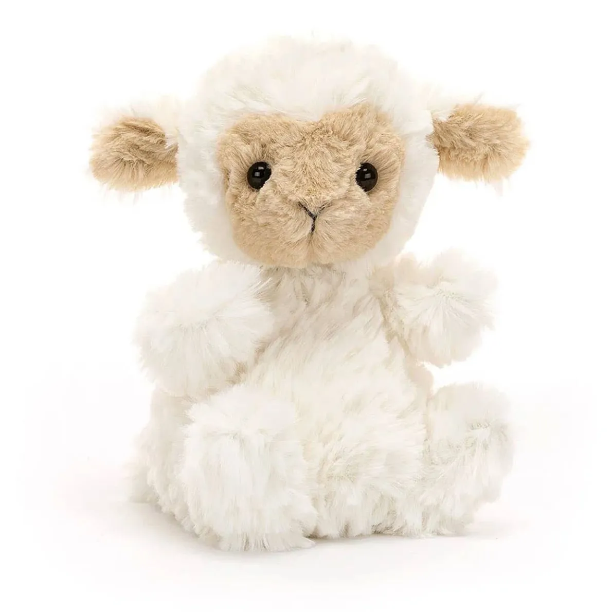 Yummy Lamb is so baby-friendly, in tufty custard-cream fur! A gentle chum with a curious face, this mini lamb is just the right size to snuggle. With little leaf ears, bobbly paws and a tiny tail, this sheep is a sweetheart. A kindly companion for the cot or buggy.